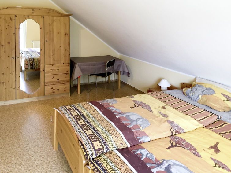 "Möwennest", 3-room semi-detached house 60 m2 on 2 levels. Modern furnishings: living/dining room with cable TV and radio. Exit to the terrace. Kitchenette (oven, dishwasher, 4 ceramic glass hob hotplates, toaster, kettle, electric coffee machine). Shower/WC. Gas heating. Upper floor: 1 double bedroom with sloping ceilings.