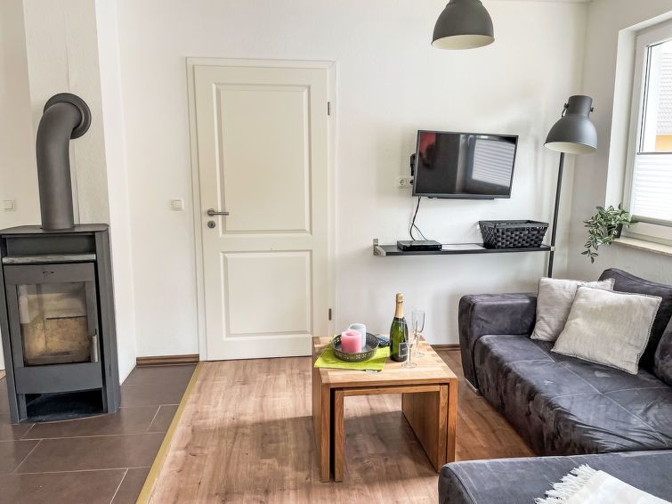 3-room apartment 65 m2, on the ground floor. Modern furnishings: living/dining room with Scandinavian wood stove and satellite TV (flat screen), radio and CD-player. Exit to the terrace. 2 rooms, each room with 1 double bed (2 x 90 cm, length 200 cm). Kitchenette (oven, dishwasher, 4 ceramic glass hob hotplates, toaster, kettle, electric coffee machine).
