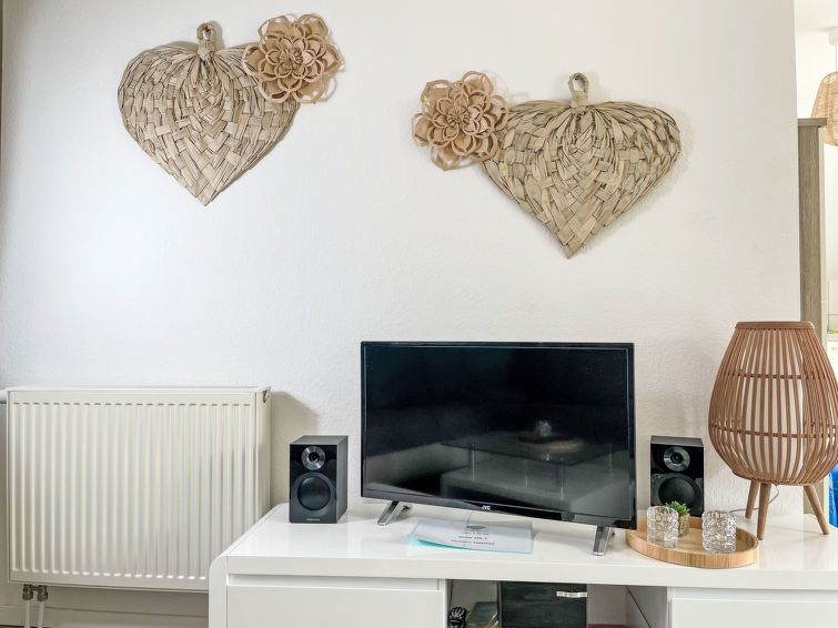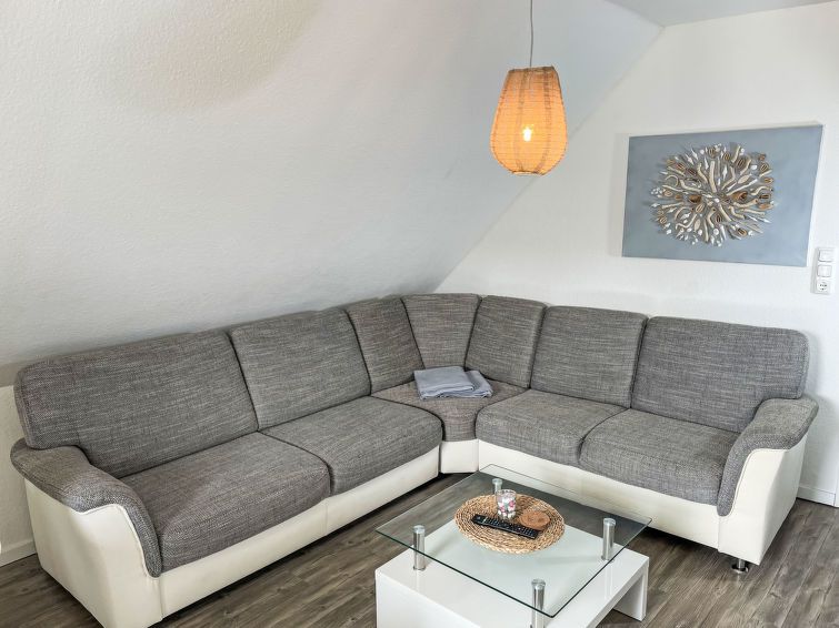 3-room apartment 60 m2 on 1st floor. Modern furnishings: upper floor: (exterior staircase) living/dining room with sloping ceilings with dining table and satellite TV (flat screen), radio and CD-player. Exit to the balcony. 2 rooms with sloping ceilings, each room with 1 double bed (2 x 90 cm, length 200 cm).