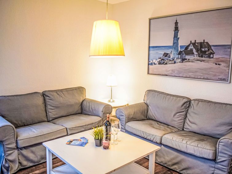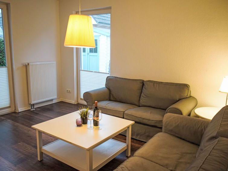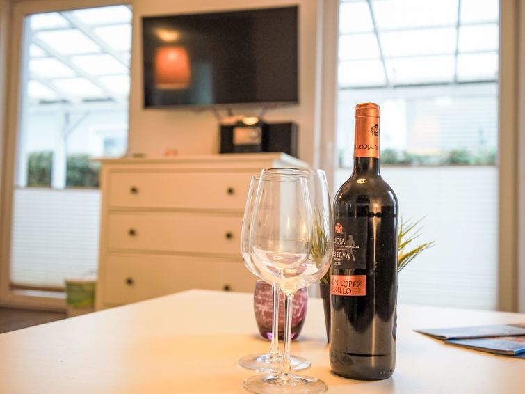 3-room apartment 65 m2, on the ground floor. Modern furnishings: living/dining room with satellite TV (flat screen), radio. Exit to the terrace. 2 rooms, each room with 1 double bed (2 x 90 cm, length 200 cm). Kitchenette (oven, dishwasher, 4 ceramic glass hob hotplates, toaster, kettle, electric coffee machine).