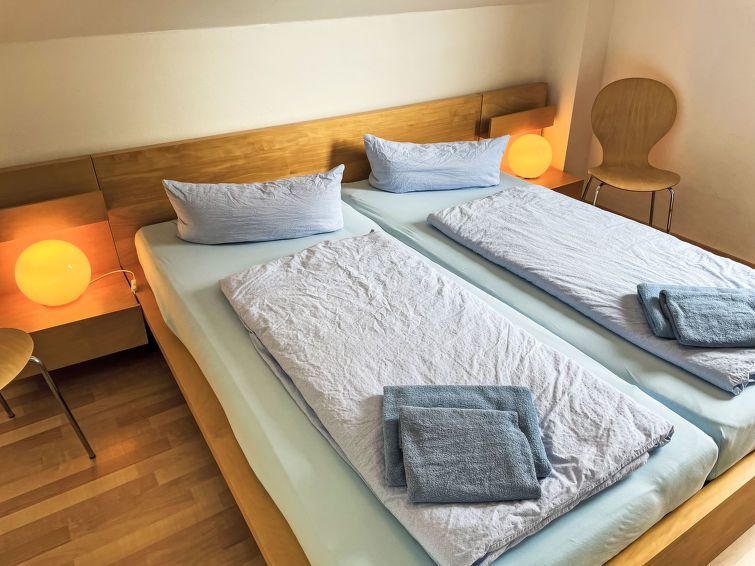 "Haus W9", 5-room house 110 m2 on 2 levels. Spacious and bright, modern and cosy furnishings: living room with Scandinavian wood stove, dining table and cable TV (flat screen), air conditioning. 1 room with 2 beds (90 cm, length 200 cm). Open kitchen (oven, dishwasher, 4 ceramic glass hob hotplates, toaster, kettle, microwave, electric coffee machine).