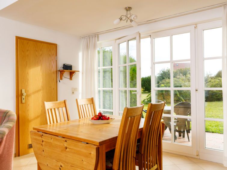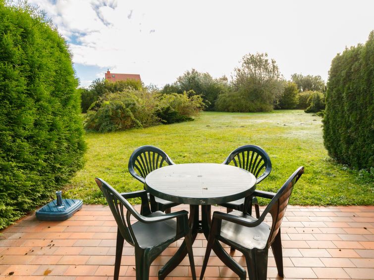 "Achterwasser App. 13", 2-room apartment 60 m2, on the ground floor. Bright, simple furnishings: living/dining room with 1 double sofabed and cable TV (flat screen), radio. Exit to the terrace. 1 room with 1 double bed. Kitchenette (4 hot plates, oven, toaster, kettle, microwave, electric coffee machine).