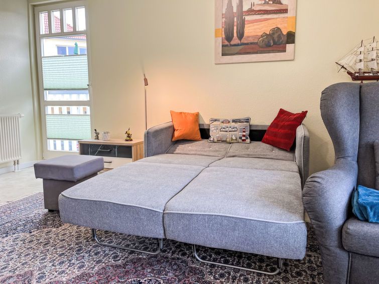 "Mika", 2-room apartment 50 m2 on 1st floor. Bright, beautiful and cosy furnishings: living/dining room with 1 sofabed (130 cm, length 200 cm), dining table and satellite TV (flat screen), hi-fi system. Exit to the balcony. 1 room with 1 double bed (180 cm, length 200 cm), satellite TV (flat screen).