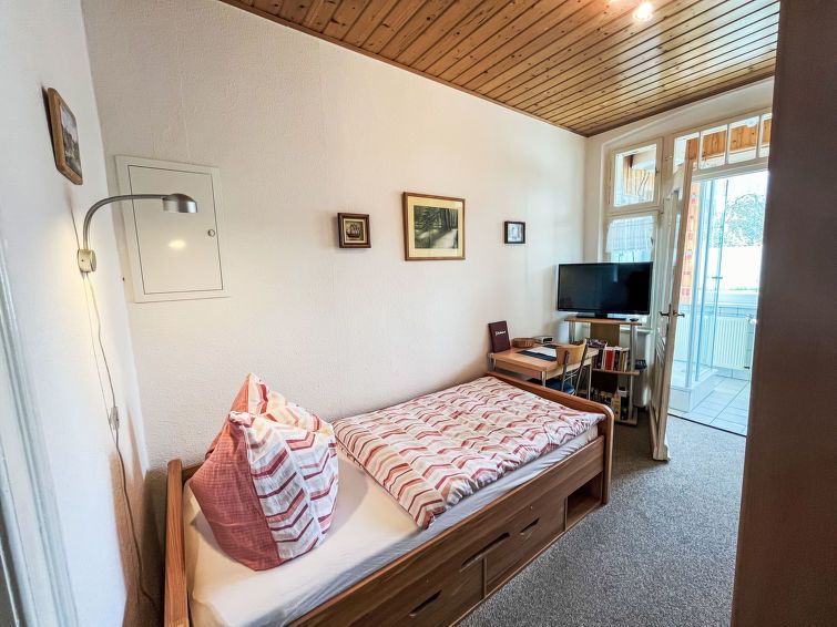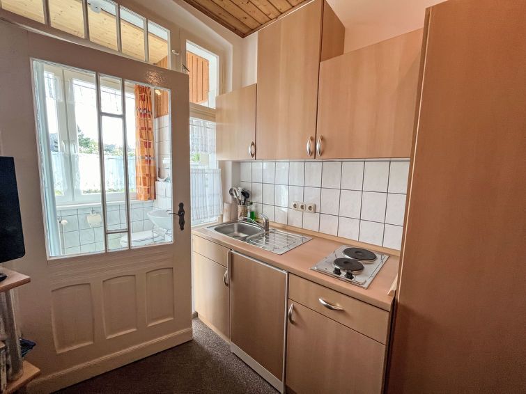 "Burgfried (App.3)", 1-room apartment 13 m2, on the upper floor. Simple and practical furnishings: living/sleeping room with 1 bed and cable TV (flat screen). Small kitchenette (2 hot plates, toaster, kettle, electric coffee machine). Shower/WC. Patio. Parking (1 car) at the house.