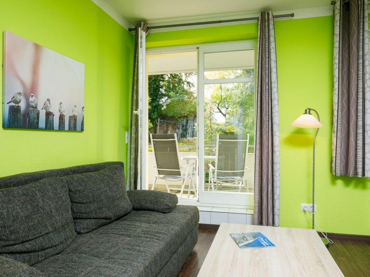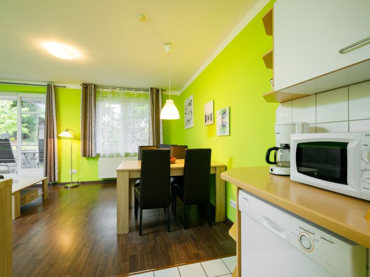 "Dünengras", 2-room apartment 53 m2 on 1st floor. Beautiful and cosy furnishings: living/dining room with 1 double sofabed and cable TV (flat screen), radio. Exit to the balcony. 1 room with 1 double bed. Kitchenette (4 hot plates, dishwasher, toaster, kettle, microwave, electric coffee machine).