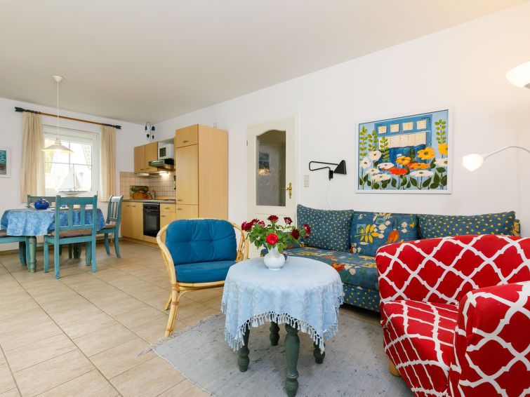 The holiday home looks great from the outside. It has four apartments. There are private parking spaces on the property. The inventory leaves a lot to be desired, the kitchen equipment is old, as is the stove, the sofa is too small, the upholstery is hard, the living room table is tiny. The entire apartment is not particularly clean. The terrace is cozy!