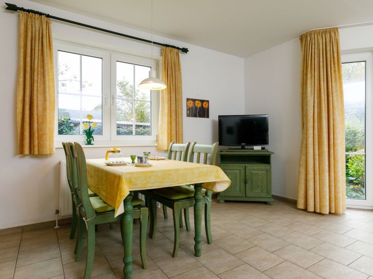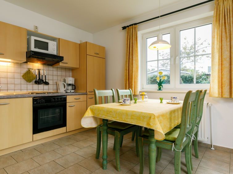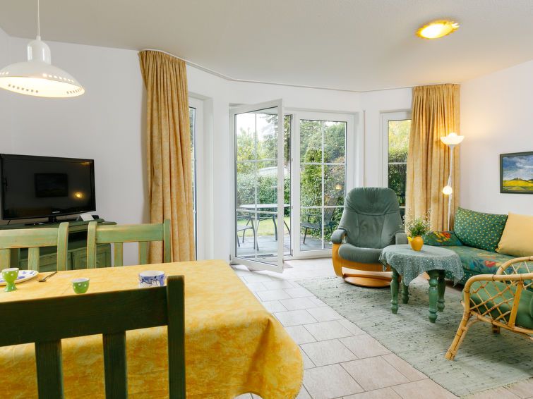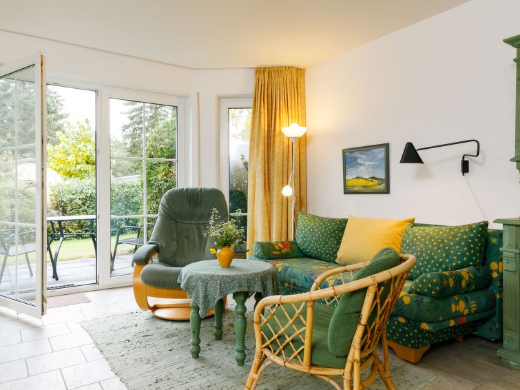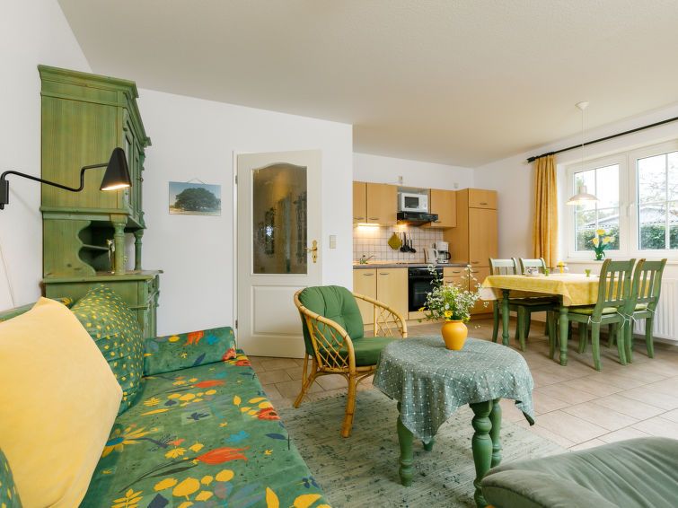 "Eickhus Grüne Wohnung", 2-room apartment 50 m2, on the ground floor. Spacious and bright, comfortable and cosy furnishings: large living/dining room with dining table, satellite TV and radio. Exit to the terrace. 1 double bedroom with 1 double bed (160 cm, length 200 cm). Kitchen-/living room (4 hot plates, oven, toaster, kettle).
