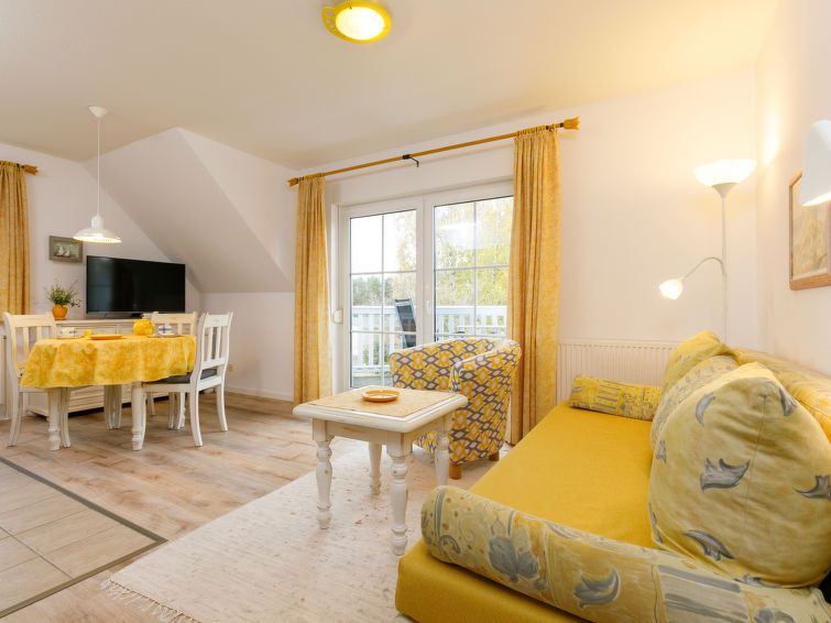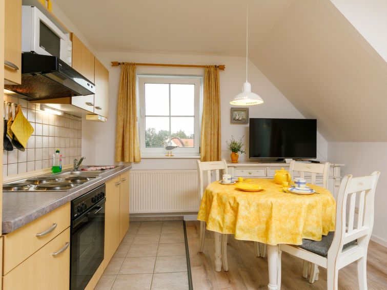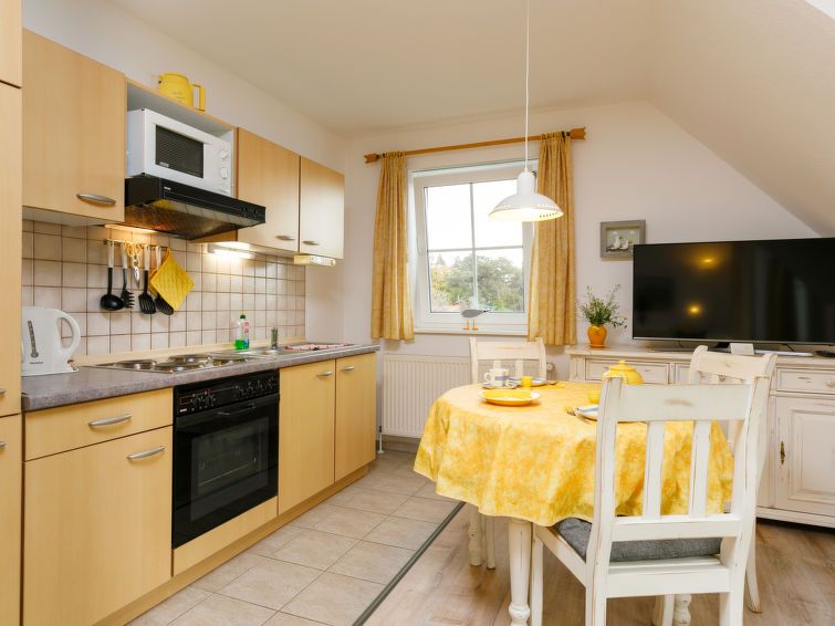 "Eickhus Weisse Wohnung", 3-room apartment 55 m2 on 1st floor. Bright, partly with sloping ceilings, comfortable and cosy furnishings: living/dining room with satellite TV (flat screen), radio. Exit to the balcony. 1 room with 1 double bed (180 cm, length 200 cm). 1 room with 1 bed (80 cm, length 200 cm).