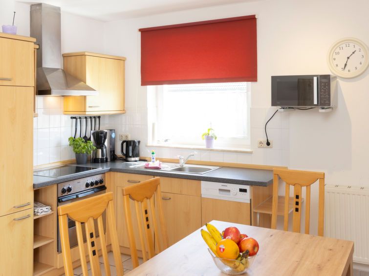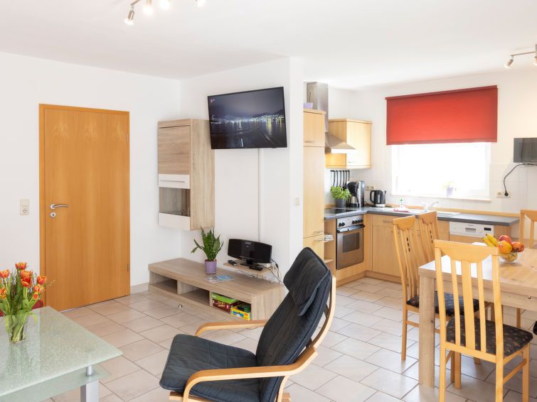 "Gartenstraße", 3-room apartment 60 m2, on the ground floor. Object suitable for 2 adults + 2 children. Comfortable and stylish furnishings: living room with dining table, satellite TV, hi-fi system and DVD. Exit to the terrace. 1 double bedroom. 1 small room with 1 x 2 bunk beds.