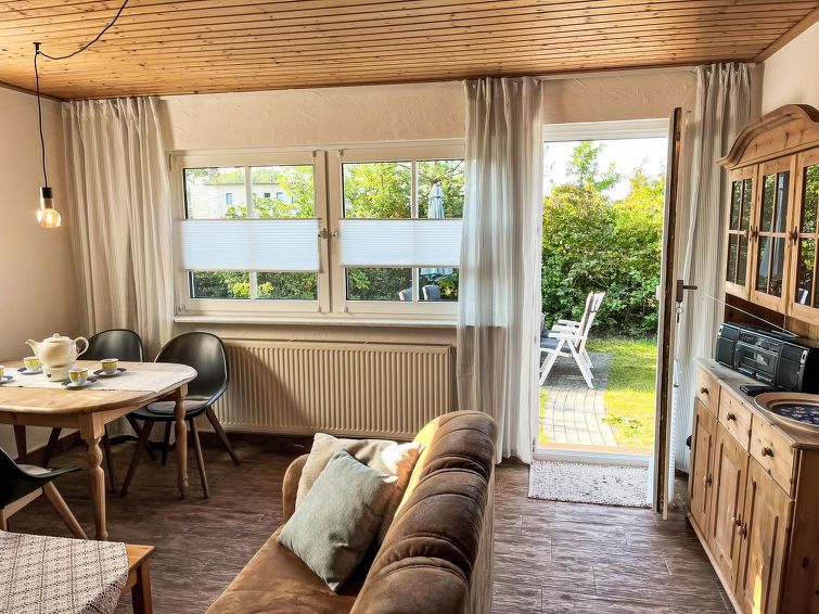 "InselkojeZwo", 3-room bungalow 65 m2. Object suitable for 5 adults. Cosy furnishings: living/dining room with satellite TV (flat screen). 1 room with 1 double bed (180 cm, length 200 cm). 1 room with 1 double bed (180 cm, length 200 cm), 1 pull-out bed (2 pers. 2 x 90 cm, length 200 cm).