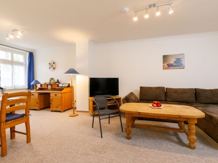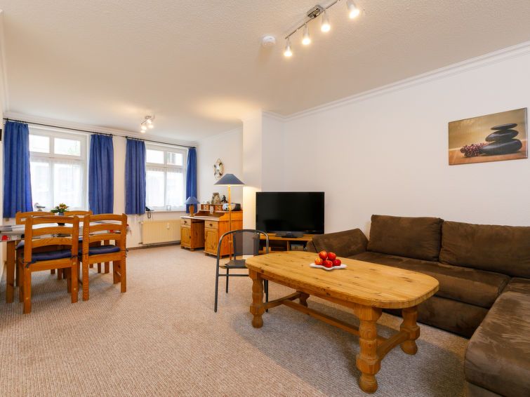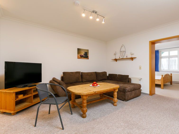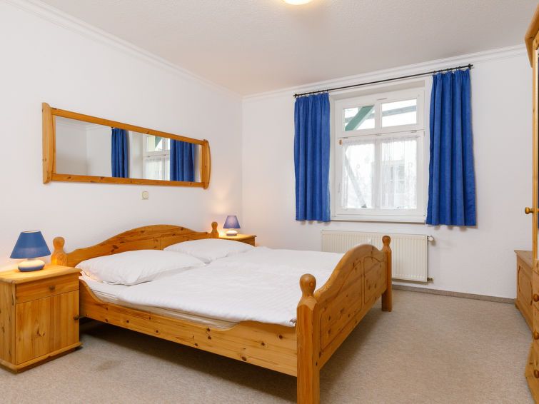 "Kannenberg", 2-room apartment 56 m2, on the ground floor. Living/dining room with 1 double sofabed and cable TV (flat screen), radio. 1 room with 1 double bed. Open kitchen (oven, 4 ceramic glass hob hotplates, toaster, kettle, microwave) with dining table. Shower/WC. Facilities: children's high chair, baby cot.