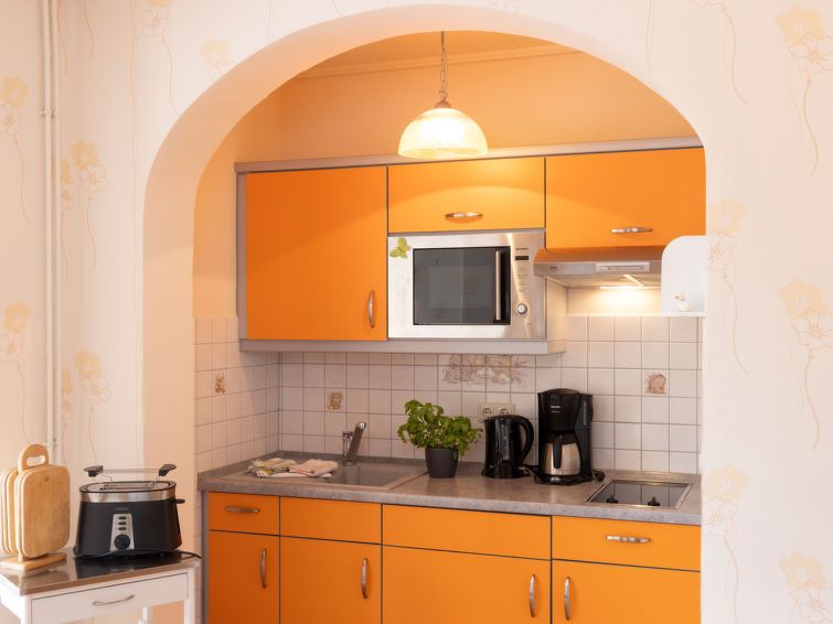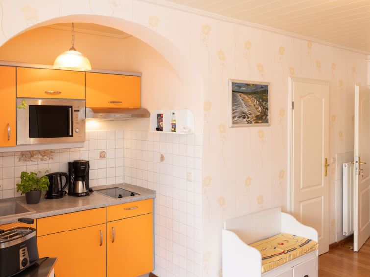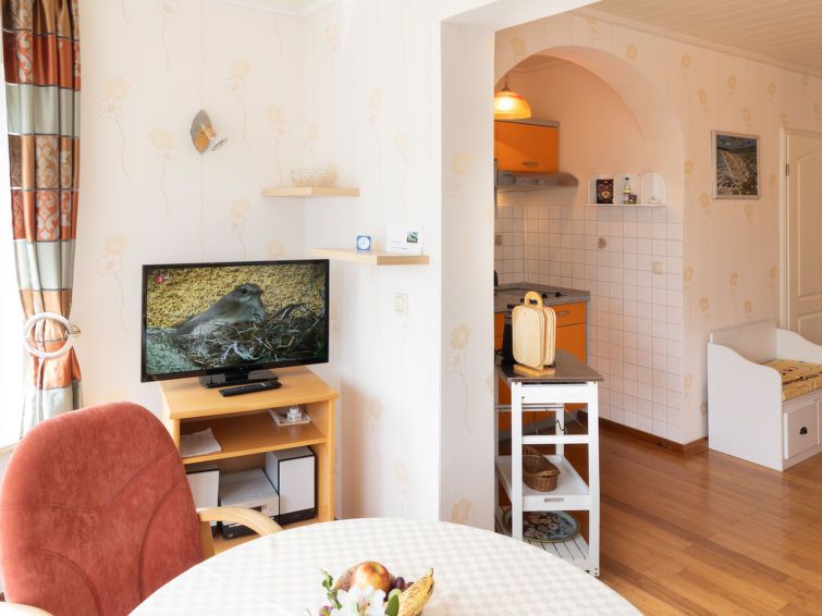 "Hummel", 1-room apartment 33 m2, on the ground floor. Object suitable for 2 adults. Very cosy furnishings: open living/sleeping room with 1 double bed (180 cm, length 200 cm), satellite TV and radio. Kitchenette (2 hot plates, toaster, kettle, microwave, electric coffee machine) with dining table.