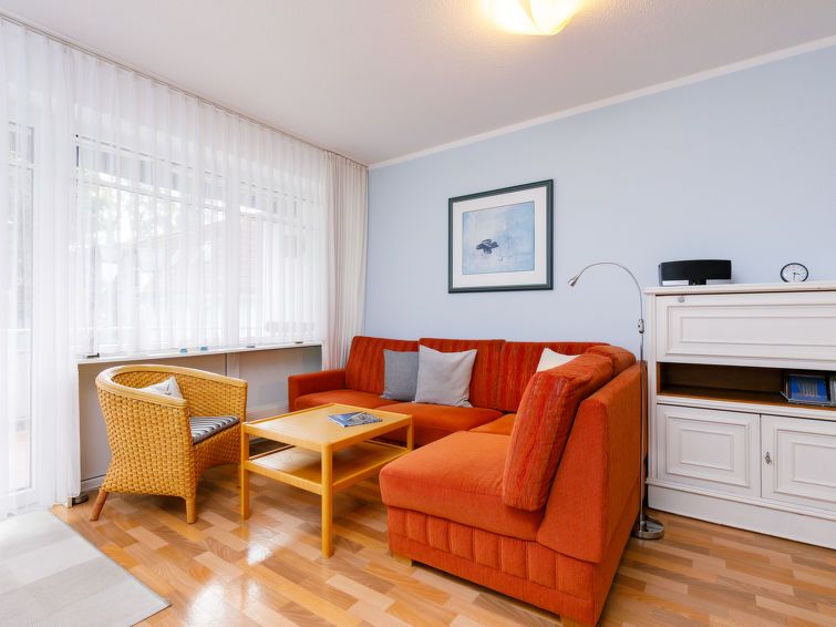 "Lamprecht", 2-room apartment 47 m2 on 1st floor. Practical furnishings: living/dining room with 1 double sofabed (140 cm, length 200 cm), cable TV (flat screen), radio and CD-player. Exit to the balcony. 1 room with 2 beds. Small kitchen (4 hot plates, oven, dishwasher, toaster, kettle, electric coffee machine).