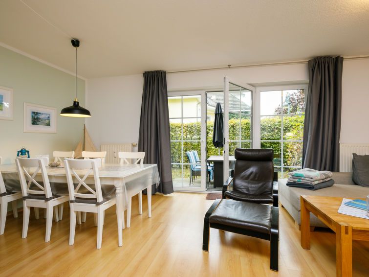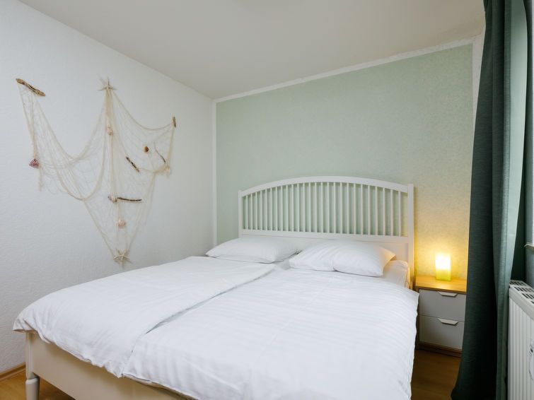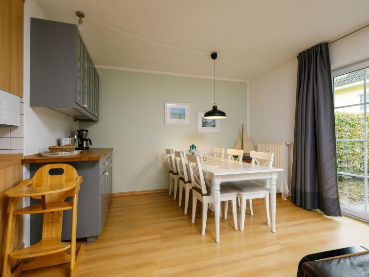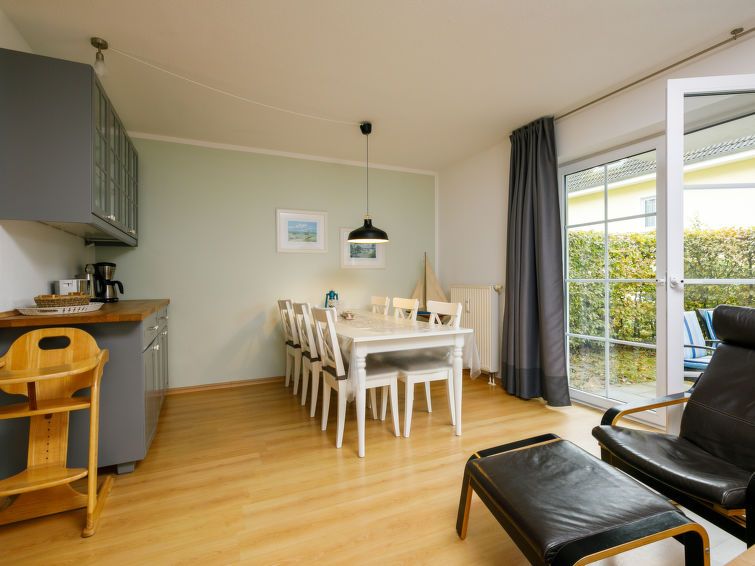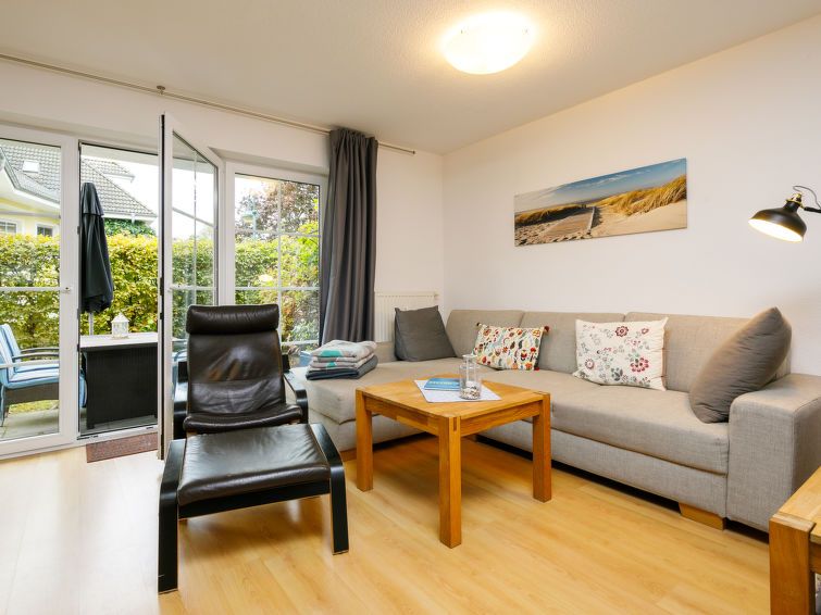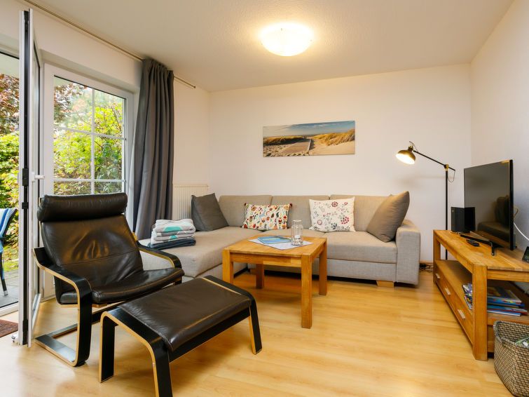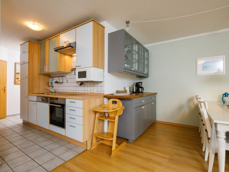 "Lütten Uttied", 3-room apartment 57 m2, on the ground floor. Cosy furnishings: living/dining room with cable TV (flat screen), radio. Exit to the terrace. 1 room with 1 double bed (2 x 90 cm, length 200 cm). 1 room with 1 double bed (2 x 80 cm, length 200 cm). Kitchenette (oven, dishwasher, 4 ceramic glass hob hotplates, toaster, kettle, microwave).