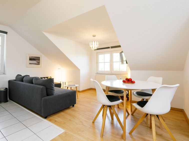 The apartment itself was very appealing. The layout, size, and location were absolutely satisfactory. The apartment is perfect for two people. We were two adults and an 11-year-old. A small wardrobe was clearly not enough. The apartment was advertised for up to four people. The sofa bed, for the third and fourth person, was both worn and apparently hadn't been thoroughly cleaned in a long time (hair of all colors was everywhere). A shelf for toiletries in the bathroom would have been nice.