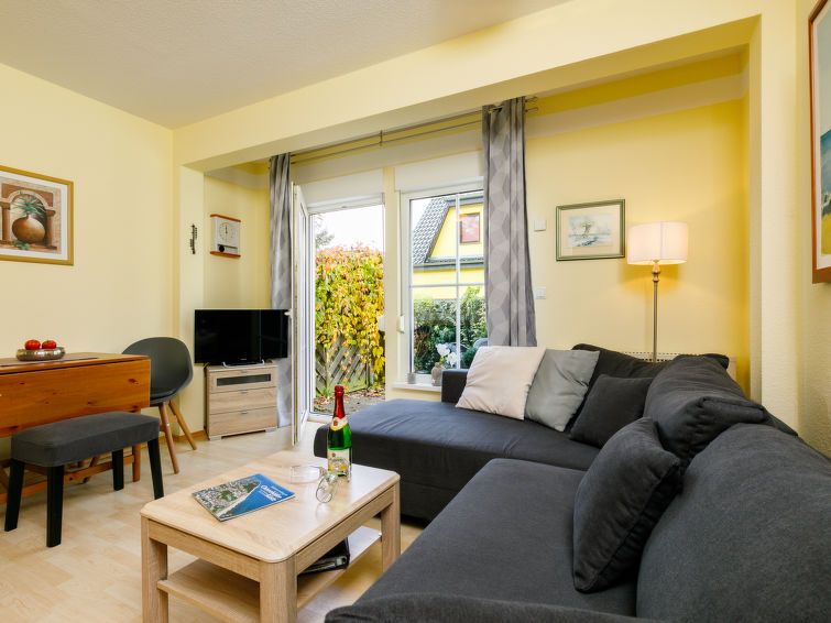 "Noah", 2-room apartment 35 m2, on the ground floor. Cosy furnishings: living/dining room with 1 sofabed and cable TV (flat screen), radio. Exit to the terrace. 1 room with 1 double bed. Kitchenette (mini-oven, 2 ceramic glass hob hotplates, toaster, kettle, microwave, electric coffee machine).