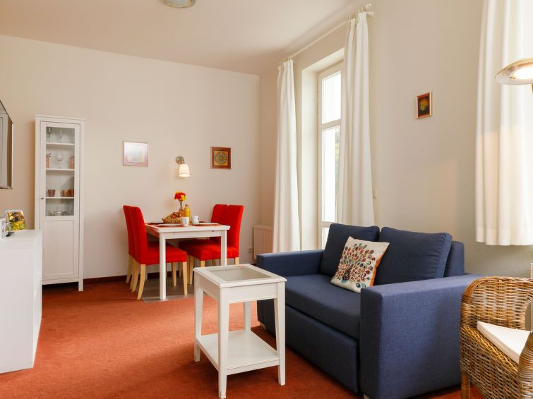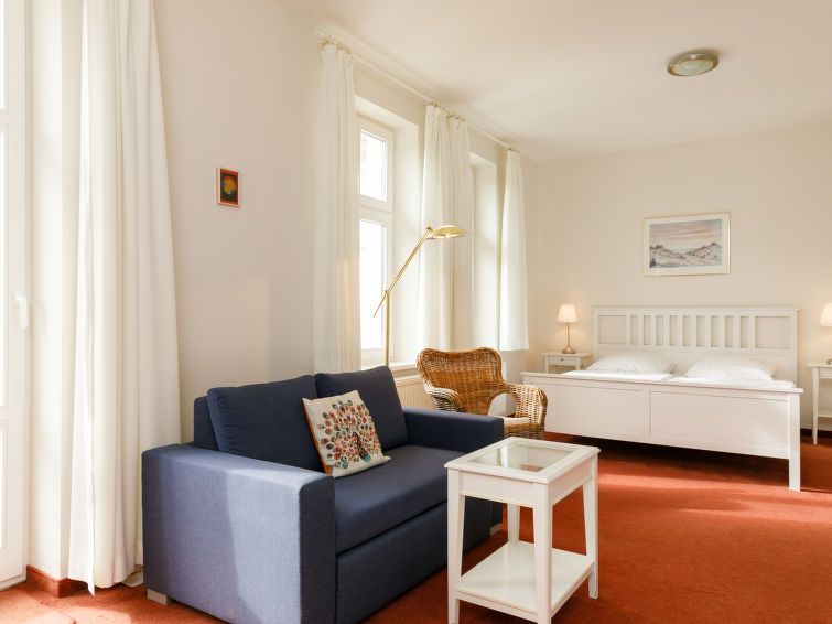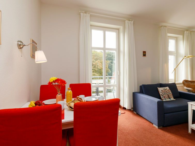 "Zinnowitzer Hof App.16", 1-room apartment 40 m2 on 3rd floor. Beautiful and cosy furnishings: living/sleeping room with 1 double bed, dining table and cable TV (flat screen). Exit to the balcony. Kitchenette (2 ceramic glass hob hotplates, toaster, kettle, electric coffee machine).