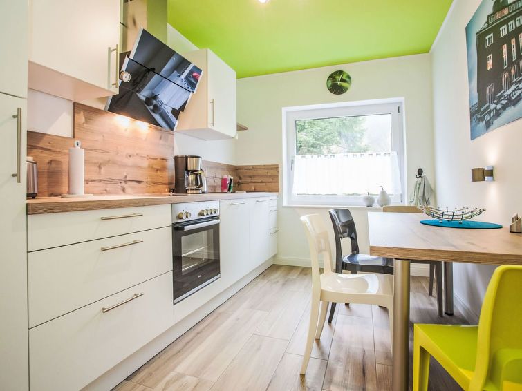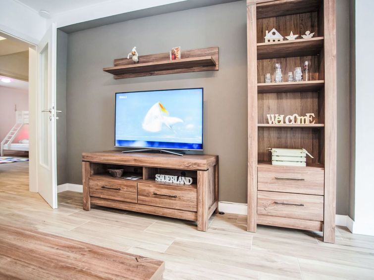 "Family Lodge", 3-room apartment 76 m2. Bright, tasteful and cosy furnishings: living/dining room with satellite TV and international TV channels. Exit to the balcony. 1 room with 1 double bed and satellite TV (flat screen). 1 room with 1 x 2 bunk beds. Kitchen (oven, dishwasher, 4 ceramic glass hob hotplates, toaster, freezer, electric coffee machine).