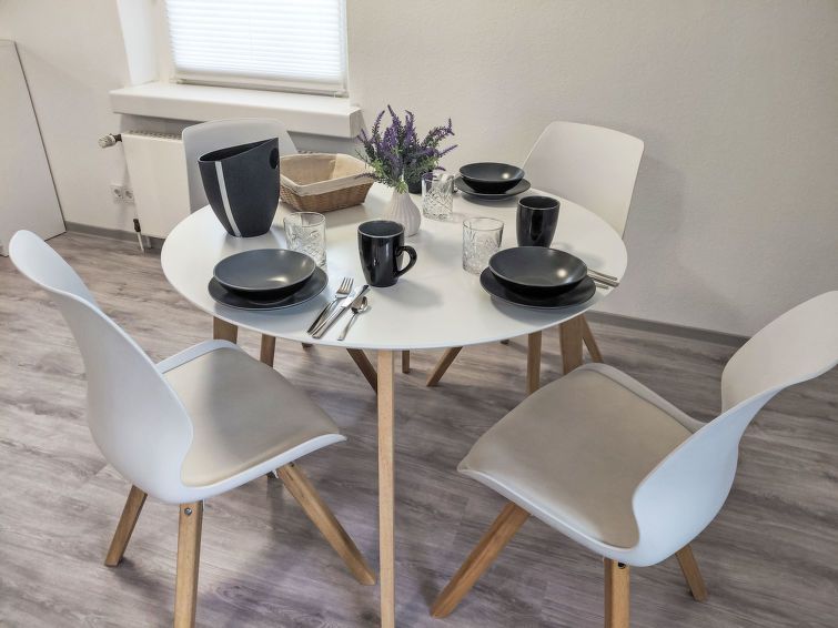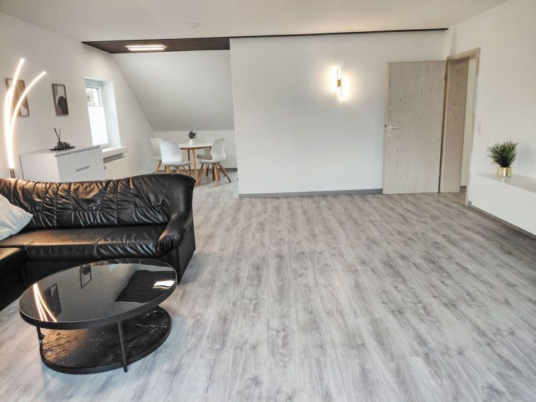 "Sonnenschein", 2-room apartment 80 m2, on the top floor. With sloping ceilings, renovated in 2025, practical and modern furnishings: living/sleeping room with 1 sofabed (110 cm, length 200 cm), dining table and cable TV (flat screen). 1 room with 1 double bed. Open kitchen (oven, dishwasher, 4 ceramic glass hob hotplates, toaster, kettle, microwave, freezer, electric coffee machine).