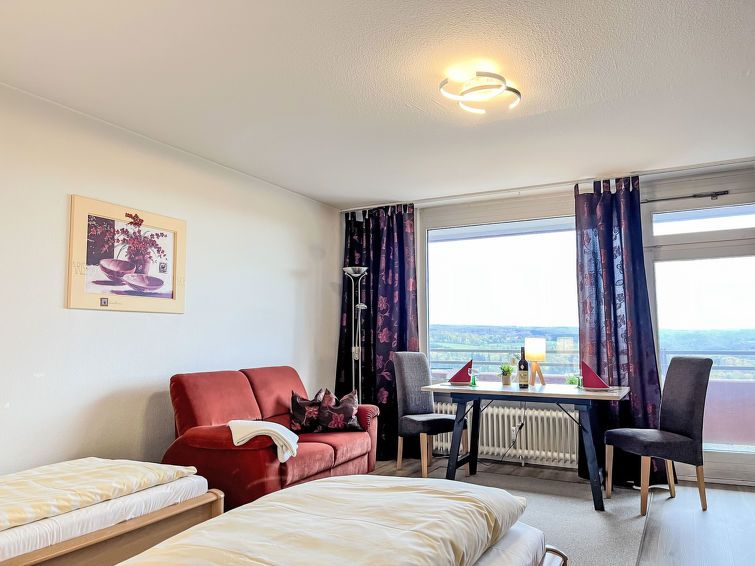 "Braubach (B715)", 1-room apartment 33 m2 on 7th floor, south facing position. Living/sleeping room with 2 beds (90 cm, length 200 cm), satellite TV (flat screen). Exit to the balcony. Kitchenette in the entrance (2 hot plates, toaster, kettle, electric coffee machine). Bath/shower/WC.