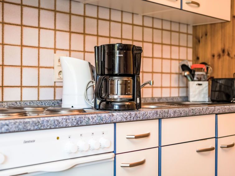 2-room apartment 35 m2, lower ground floor. Cosy and wooden furniture furnishings: living/dining room 20 m2 with satellite TV (flat screen). Exit to the terrace. 1 room 9 m2 with 1 double bed (180 cm, length 200 cm). Kitchenette (4 hot plates, oven, toaster, kettle, electric coffee machine).