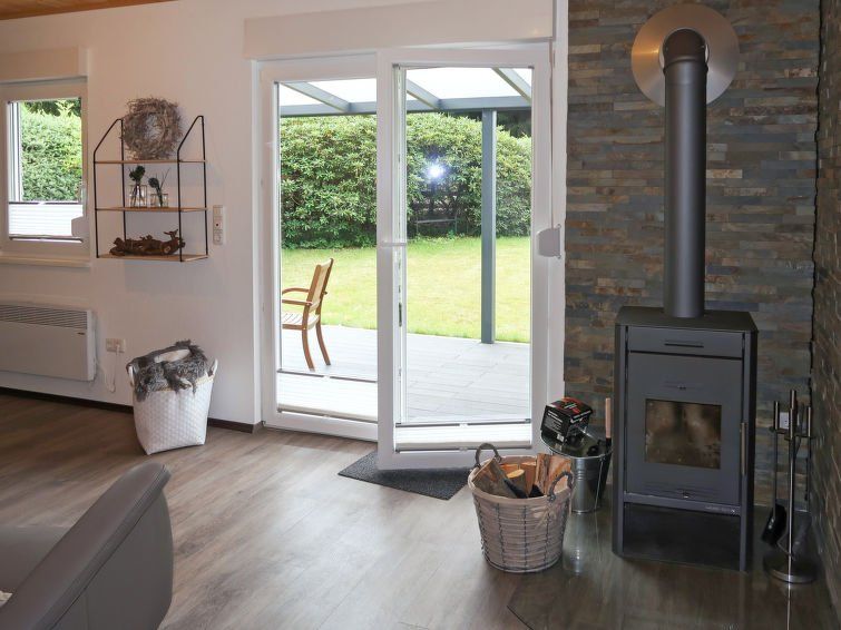 2-room house 43 m2. Renovated in 2017, modern furnishings: living/dining room with Scandinavian wood stove, dining table, bar and satellite TV. Exit to the terrace. 1 room with 1 double bed. Open kitchen (oven, dishwasher, 4 ceramic glass hob hotplates, toaster, kettle). Shower/WC.