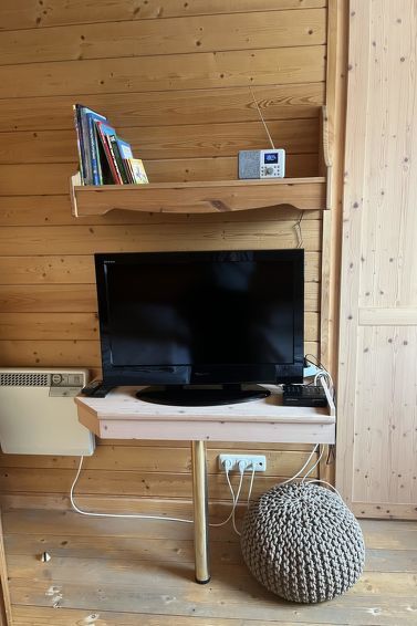 3-room semi-detached house 76 m2 on 2 levels. Cosy and wooden furniture furnishings: living room with dining table, satellite TV and hi-fi system. Exit to the terrace. Open kitchen (oven, dishwasher, 4 ceramic glass hob hotplates, microwave, electric coffee machine). Sep. WC. Upper floor: with sloping ceilings, 1 room with 1 double bed.