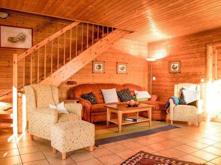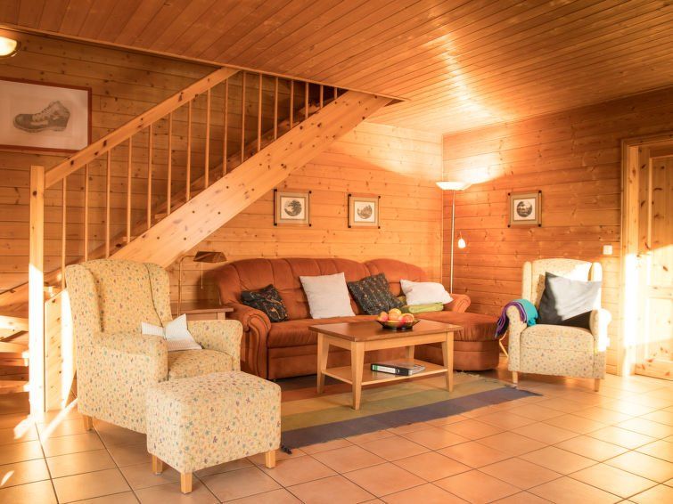 "Haus 404", 3-room semi-detached house 76 m2 on 2 levels. Cosy and wooden furniture furnishings: living room with dining table and satellite TV (flat screen), hi-fi system. Exit to the terrace. Open kitchen (oven, dishwasher, 4 ceramic glass hob hotplates, toaster, kettle, microwave, electric coffee machine).