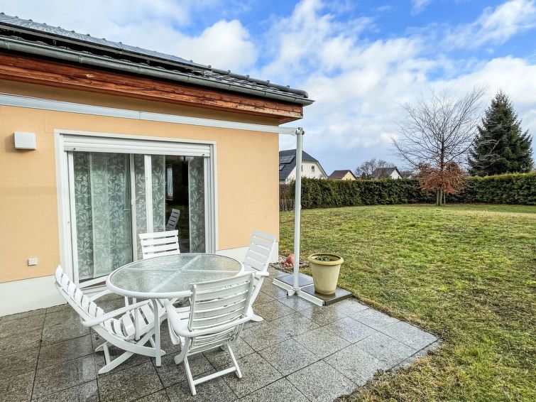 3-room house 82 m2, on the ground floor. Tasteful and cosy furnishings: living/sleeping room with 1 sofabed (140 cm, length 200 cm), dining table and satellite TV (flat screen). Exit to the terrace. 1 room with 1 double bed (2 x 80 cm, length 200 cm), satellite TV (flat screen). 1 room with 1 double bed (2 x 80 cm, length 200 cm), satellite TV (flat screen).