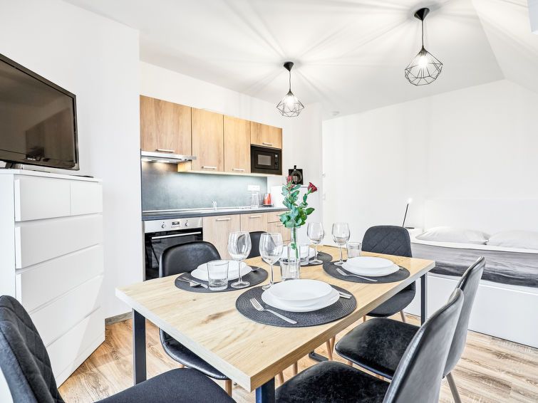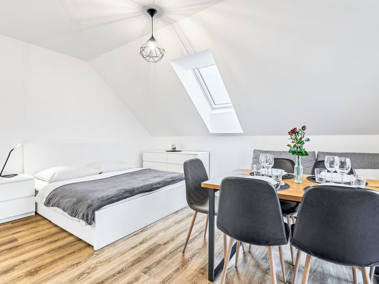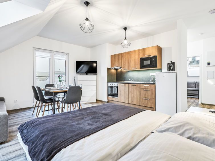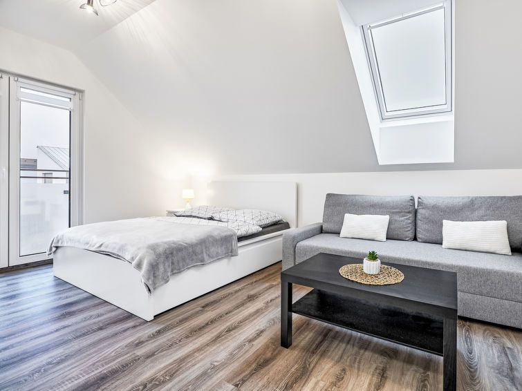 "Ski Trek", 2-room apartment on 1st floor. Beautiful and modern furnishings: 1 room with 1 double bed. Living/sleeping room with 1 double bed, dining table and satellite TV. Kitchenette (oven, microwave, electric coffee machine). Bath/shower. Heating. Facilities: Internet (WiFi, free).