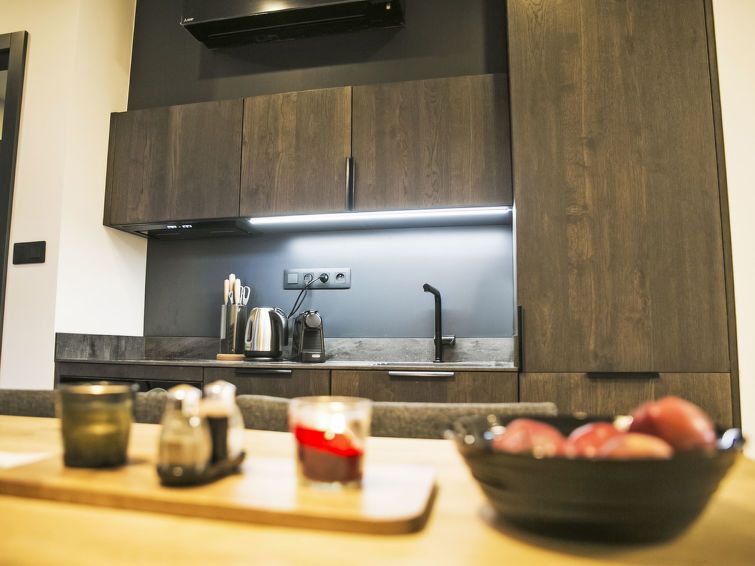 "Pampeliška", 3-room apartment 58 m2 on 3rd floor. Bright, modern furnishings: entrance hall. Living room with 1 sofabed, TV and air conditioning. 2 rooms, each room with 1 double bed. Kitchenette (oven, dishwasher, 4 ceramic glass hob hotplates, toaster, kettle, microwave) with dining table.