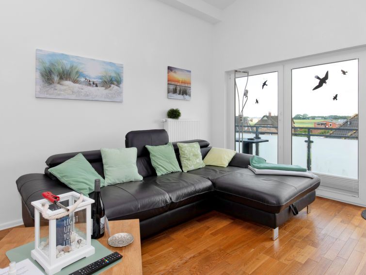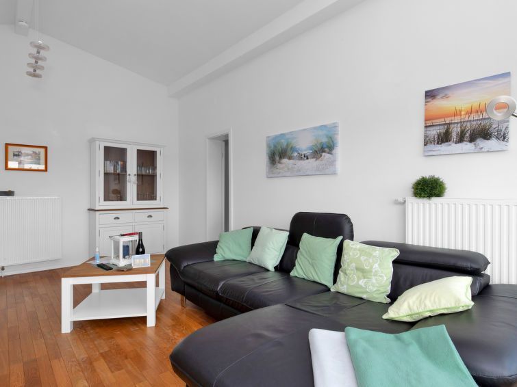 "Sturm", 3-room apartment 104 m2 on 2nd floor. Partly with sloping ceilings, cosy furnishings: living/dining room 23 m2 with 1 double sofabed and satellite TV (flat screen). Exit to the balcony. 1 room 30 m2 with 1 double bed (180 cm, length 200 cm), satellite TV (flat screen). 1 room 16 m2 with 2 beds (90 cm, length 200 cm).