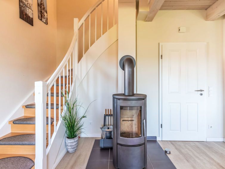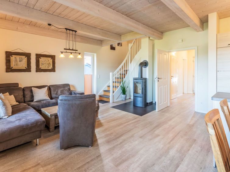 "Meeresbrise", 4-room terraced house 100 m2 on 2 levels. Comfortable and tasteful furnishings: living/dining room with Scandinavian wood stove and satellite TV (flat screen), radio and CD-player. Exit to the terrace. 1 room with 1 bed. Open kitchen (oven, dishwasher, 4 ceramic glass hob hotplates, toaster, kettle, microwave, freezer, electric coffee machine).