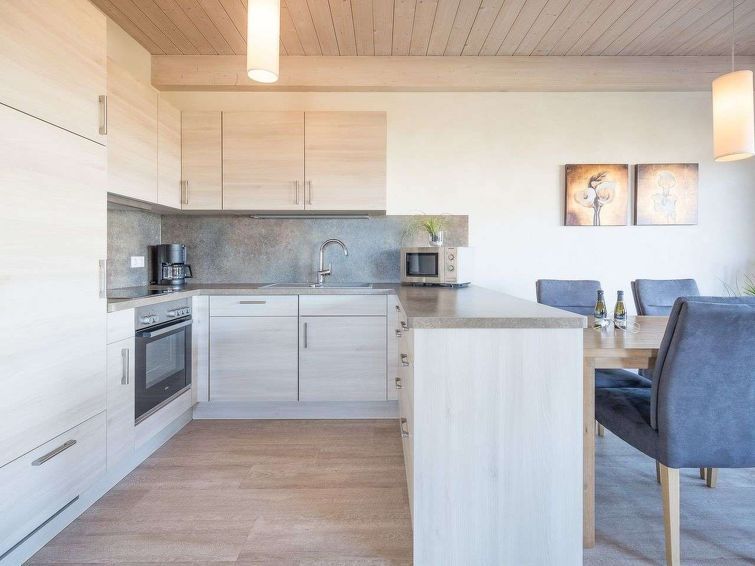 "Rotschenkel", 4-room semi-detached house 100 m2 on 2 levels, on the ground floor. Comfortable and tasteful furnishings: living/dining room with Scandinavian wood stove and satellite TV (flat screen), radio and DVD. Exit to the terrace. 1 room with 1 bed. Open kitchen (oven, dishwasher, 4 ceramic glass hob hotplates, electric coffee machine).