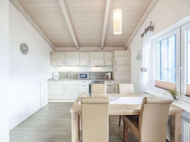 "Wattschnecke", 3-room house 85 m2, on the ground floor. Comfortable and tasteful furnishings: living/dining room with Scandinavian wood stove and satellite TV (flat screen), radio and DVD. Exit to the terrace. 2 double bedrooms. Open kitchen (oven, dishwasher, 4 ceramic glass hob hotplates, electric coffee machine).