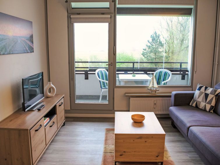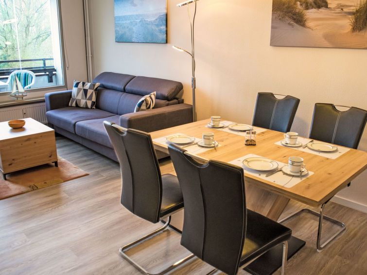 "Ostsee-Blick", 2-room apartment 49 m2 on 2nd floor. Bright, beautiful and cosy furnishings: open living/sleeping room with 1 double sofabed (140 cm, length 200 cm), dining table, satellite TV and flat screen. Exit to the loggia. 1 room with 1 double bed. Open kitchen (oven, dishwasher, 4 ceramic glass hob hotplates, toaster, kettle, electric coffee machine).