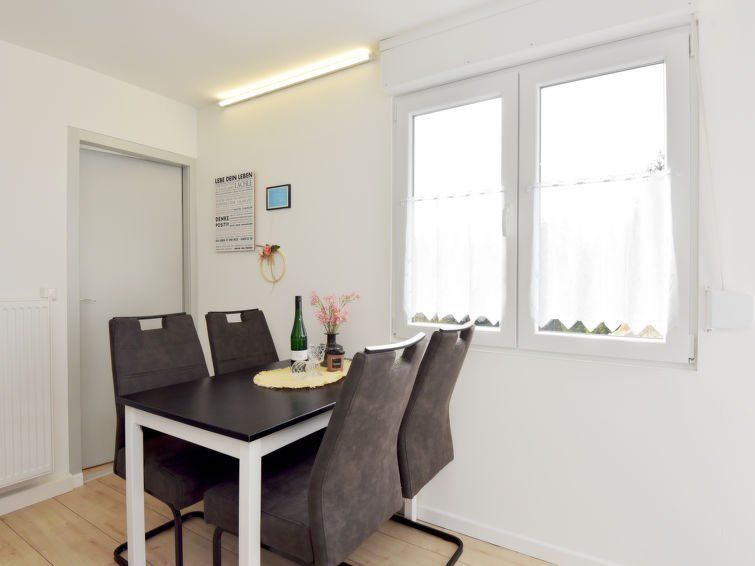 3-room house 55 m2, on the ground floor. Renovated in 2018, modern furnishings: living room with Scandinavian wood stove and satellite TV (flat screen). Entrance hall with dining table. 1 room with 1 double bed. 1 room with 1 x 2 bunk beds. Small kitchen (oven, 4 ceramic glass hob hotplates, toaster, kettle, microwave, electric coffee machine).