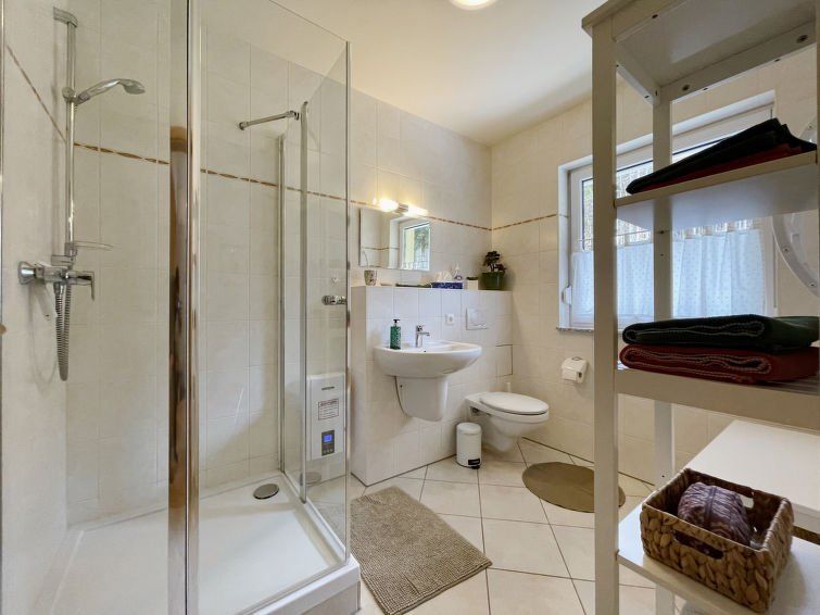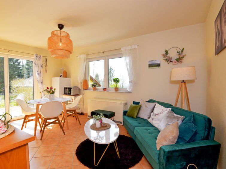 3-room house 50 m2. Cosy furnishings: living/dining room with dining table and satellite TV (flat screen), radio and hi-fi system. Exit to the garden, to the terrace. 1 room with 1 double bed. 1 room with 1 x 2 bunk beds. Kitchenette (oven, 4 ceramic glass hob hotplates, toaster, kettle, microwave, electric coffee machine).