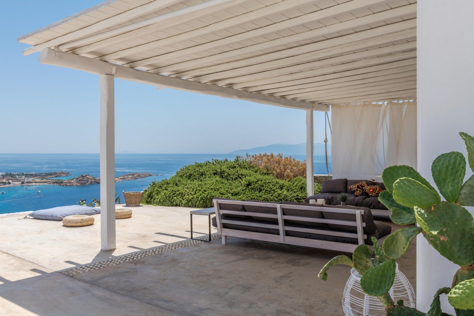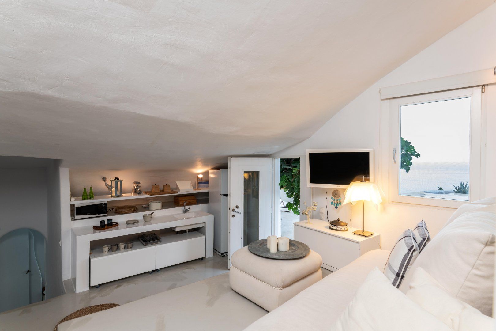 Of course, the spectacular views of the Aegean Sea are always enhanced when seen from an infinity pool. Hop in for a fresh dip whilst sipping on a cocktail made from the outdoor bar, or get a sun-kissed glow on the comfy cushions surrounding the pool.