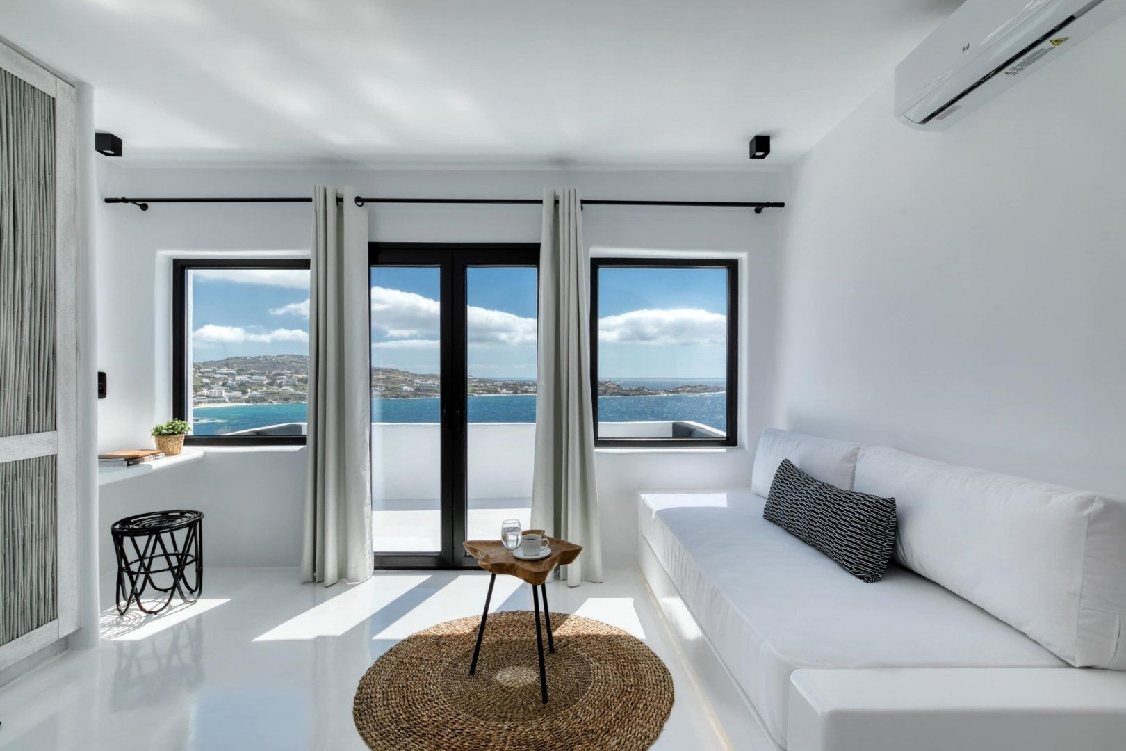 With a Cycladic design and layout that focuses on a natural flow between rooms, this beautiful, luxurious Mykonos villa plays to its strengths in a huge way. Knowing the panoramic views of the Aegean is one of its most alluring features – but definitely not the only standout aspect – this home has been built with a number of windows, allowing you to keep the horizon in view even from inside. That means late-morning reading sessions sprawled on the sofa, peeking over your book to catch a glimpse of blue.