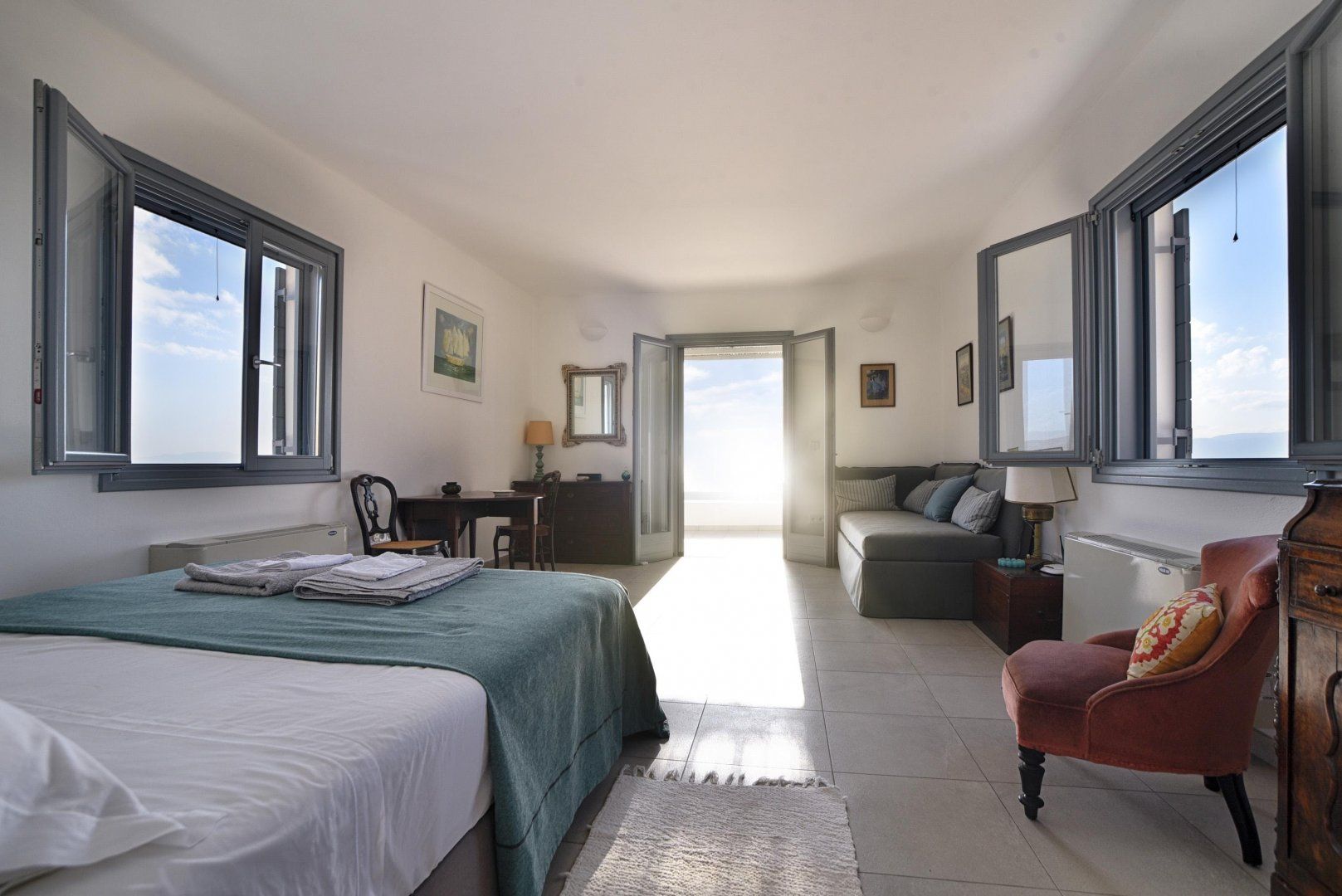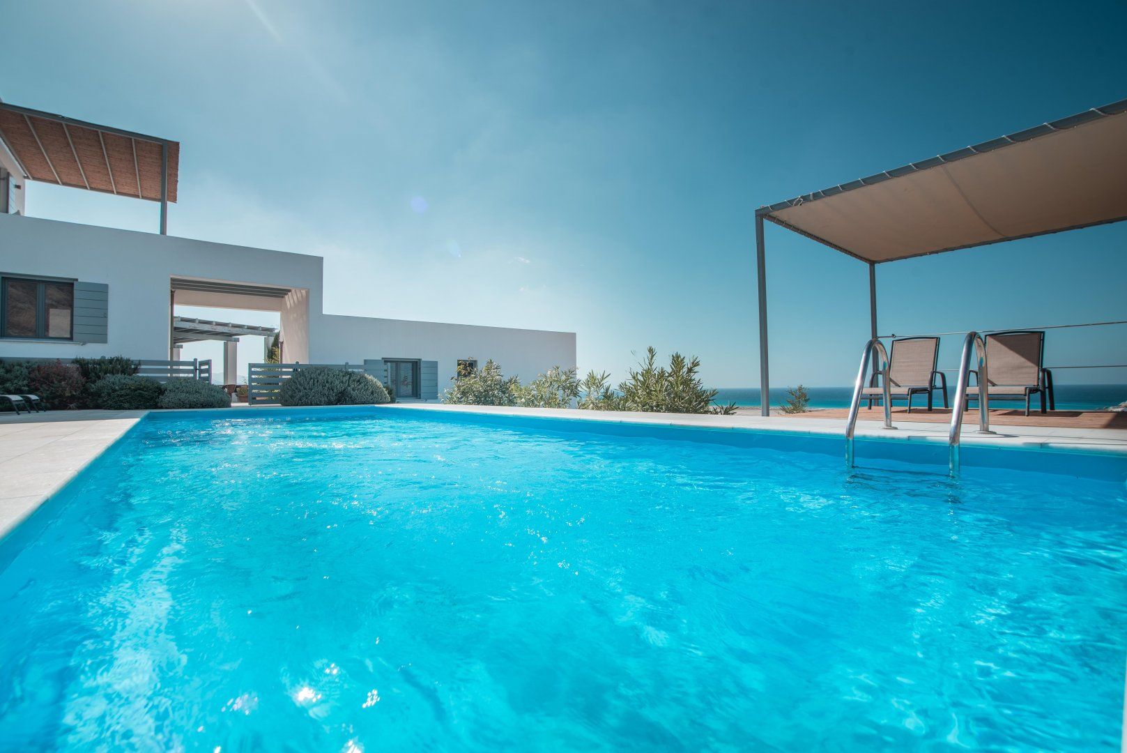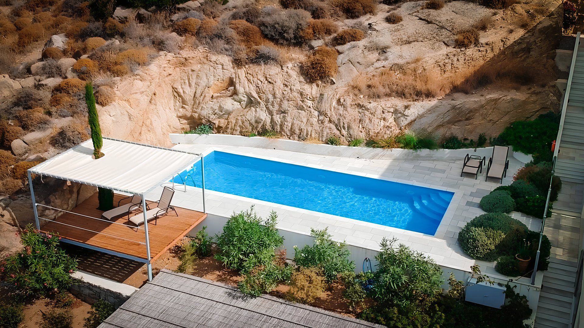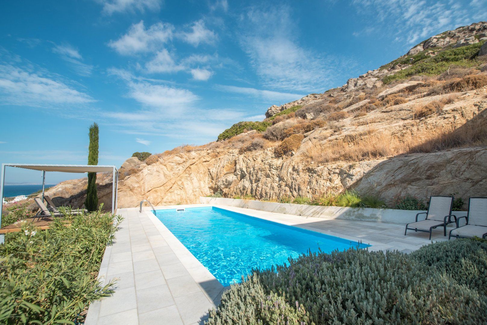 This stunning villa is perfect for families or groups of up to 14 people. With two separate buildings, this property offers a total of six large bedrooms and five bathrooms. The layout of the villa is ideal for families with children or six couples, with three separate buildings and many spacious communal private areas to escape for private moments. Guests can also enjoy a beautiful swimming pool carved out of the surrounding rocks, with fantastic views and a pergola for shade and lounging. The villa is located on a hillside in Mikri Vigla, just a 10-minute walk from one of Greece's best beaches with sun beds, umbrellas available for hire and a great restaurant. There are further restaurants, cafes, grocery stores, and an ATM/cash machine located near the beach. A car is recommended, however there is a bus service to Naxos town. Naxos averages more than 10 hours of sunshine a day in the summer months and almost no rain in June, July, August and September.