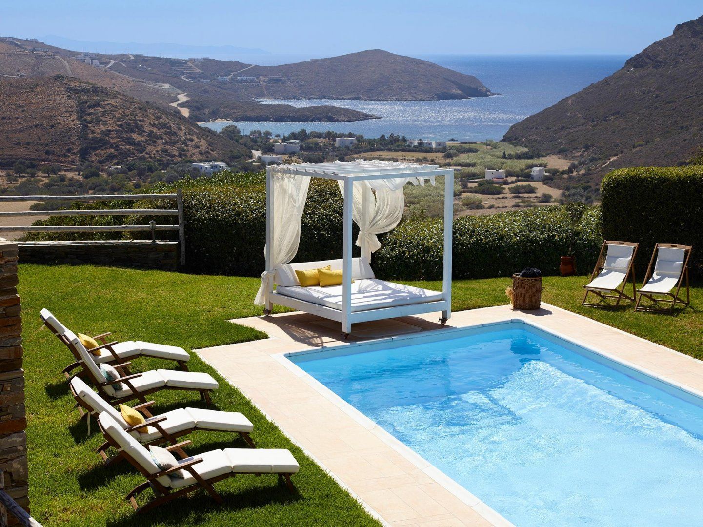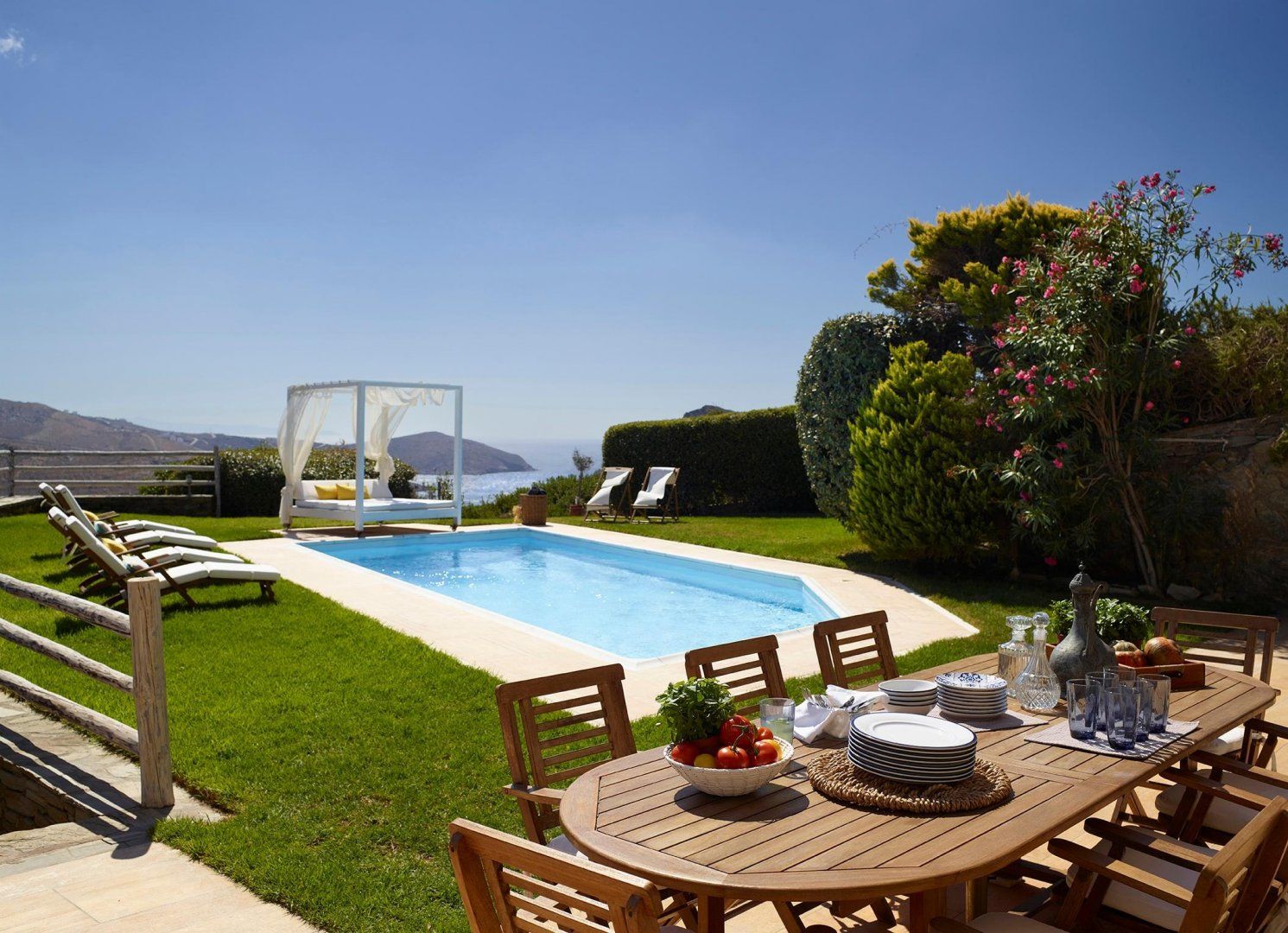 Outside, you’re spoiled for choice for places to stretch out in the sunshine. Spend mornings dipping in and out of the pool before sitting down for breakfast on the terrace. Snooze in the daybed, recline on a lounger or make yourself comfortable in a deck chair with a good book and a cup of Greek coffee.
