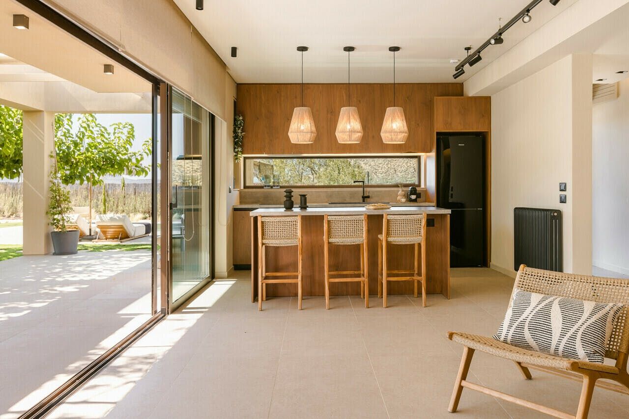 Located in the sun kissed hills of Attica, this home was made for slow days amidst vineyards and olive groves. There’s a peaceful garden with a private pool and plenty of shaded spots for lazy afternoon siestas. Special events can be held here on request and there’s a wine cellar, a tasting room and an additional kitchen in the annexe. Inside, the rooms set the tone for total relaxation, while daily housekeeping is provided for optimum comfort. You will need a car to get around, but it’s just a ten-minute drive to Paralia Mavro Lithari beach.