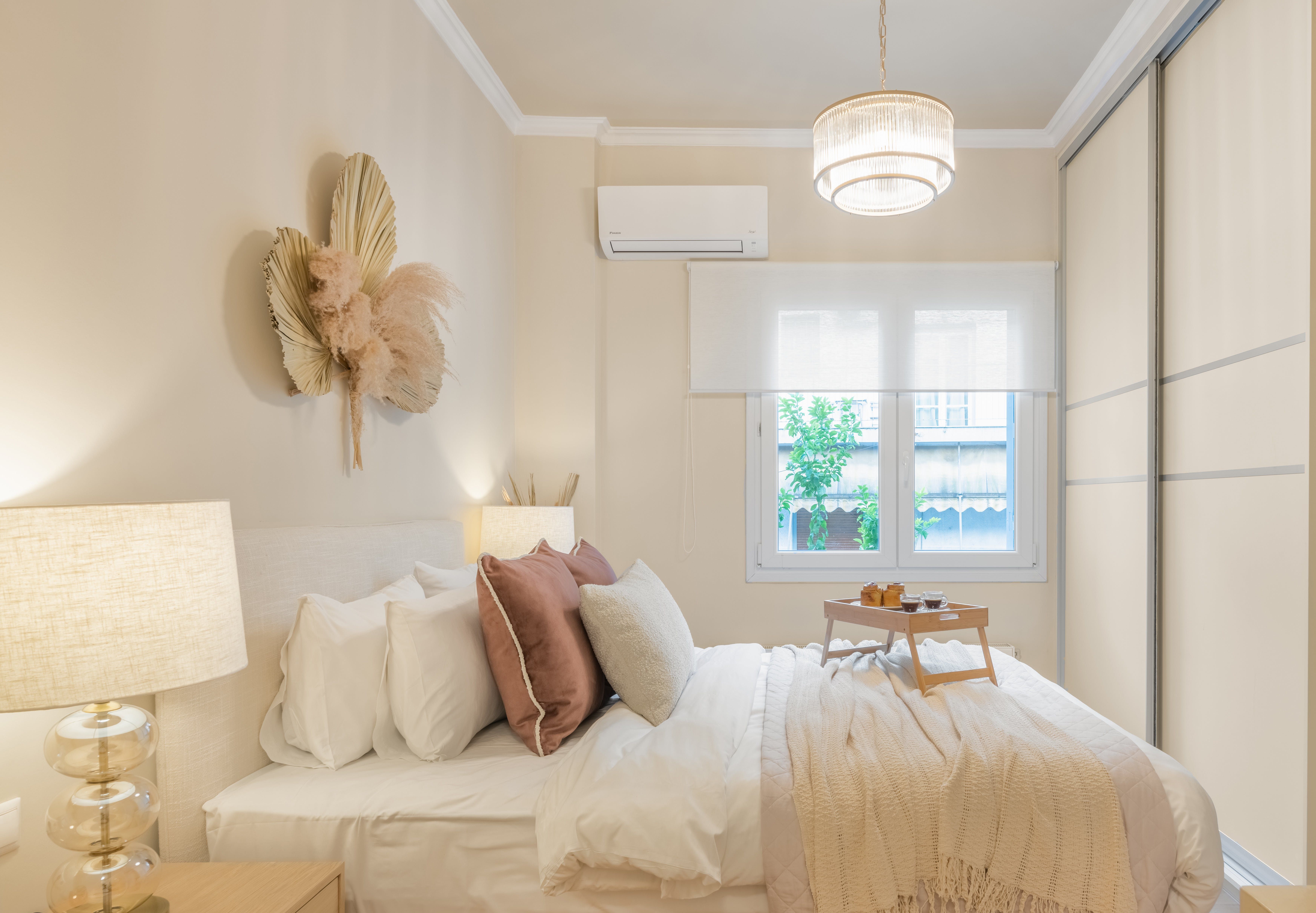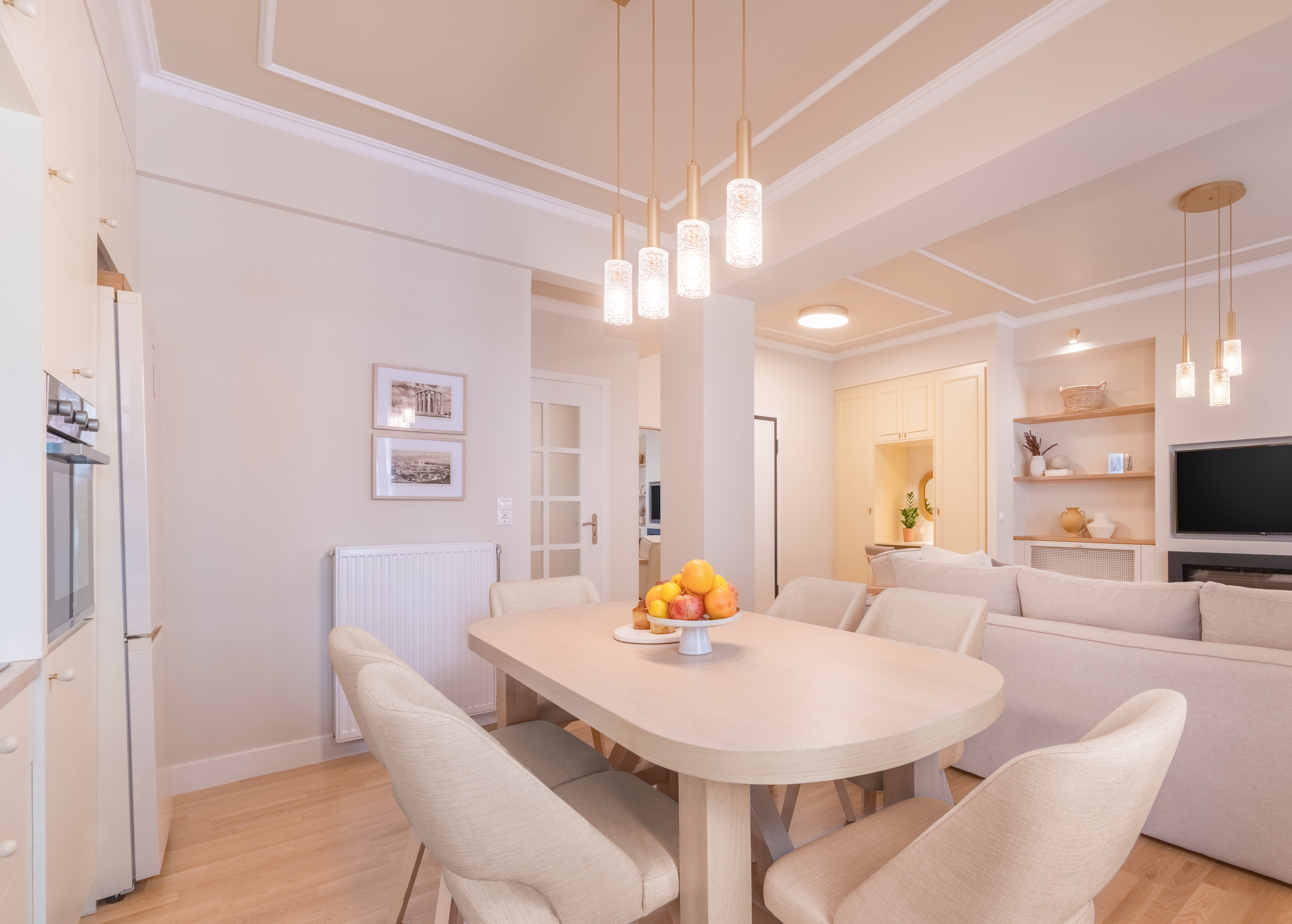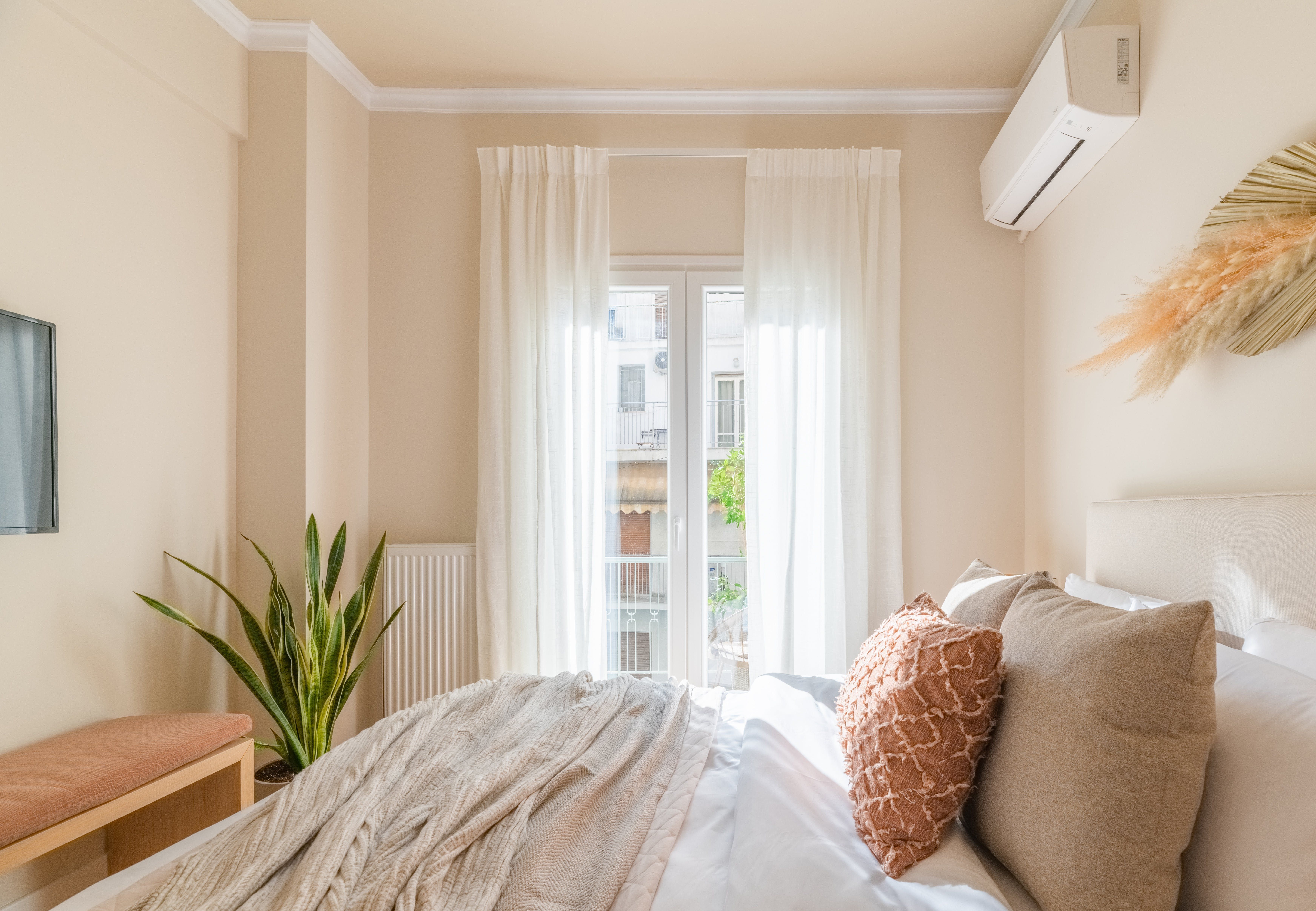 Make your trip to Athens magical by staying in a home fit for the gods. Nestled in the lively area of Koukaki, this upscale apartment invites you to experience the Greek capital in the best way possible. Freshly renovated and enlivened with luxury appeal, this place is illuminated by a medley of earthy tones, and softened by a selection of natural materials. It’s chic but cosy. Decor details like the cornice enhance that sense of refinement, while the snuggly throws and cushions make things extra homely.