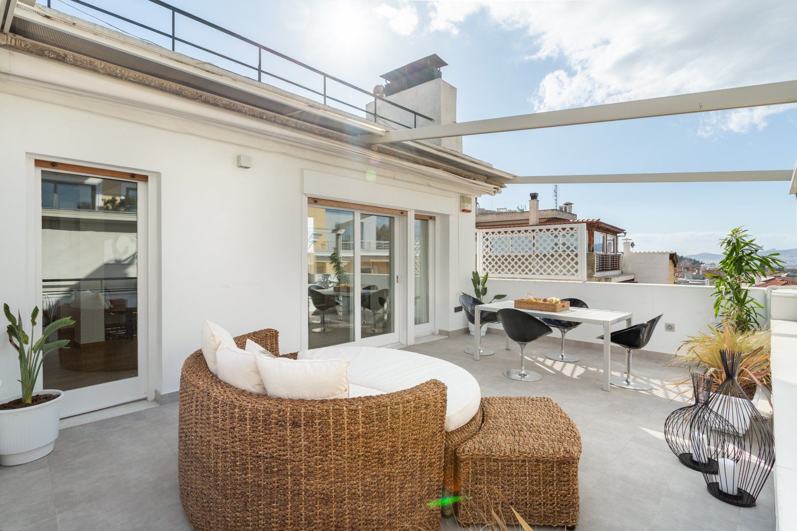 Located in the heart of Athens, this bright penthouse is perfect for a romantic getaway with your significant other. Wake up in the sunlit bedroom with a gorgeous view of the surrounding area, and step onto the terrace to enjoy an energising cup of coffee to get you ready for a day of exploration. This home is situated in the perfect spot for history buffs, as some of the most famous Grecian historic sites are within walking distance. Make sure you've got your camera ready to snap photos of Acropolis – in fact, you've got a view of this citadel from your very own balcony back at home too, the perfect backdrop when enjoying a glass of red.