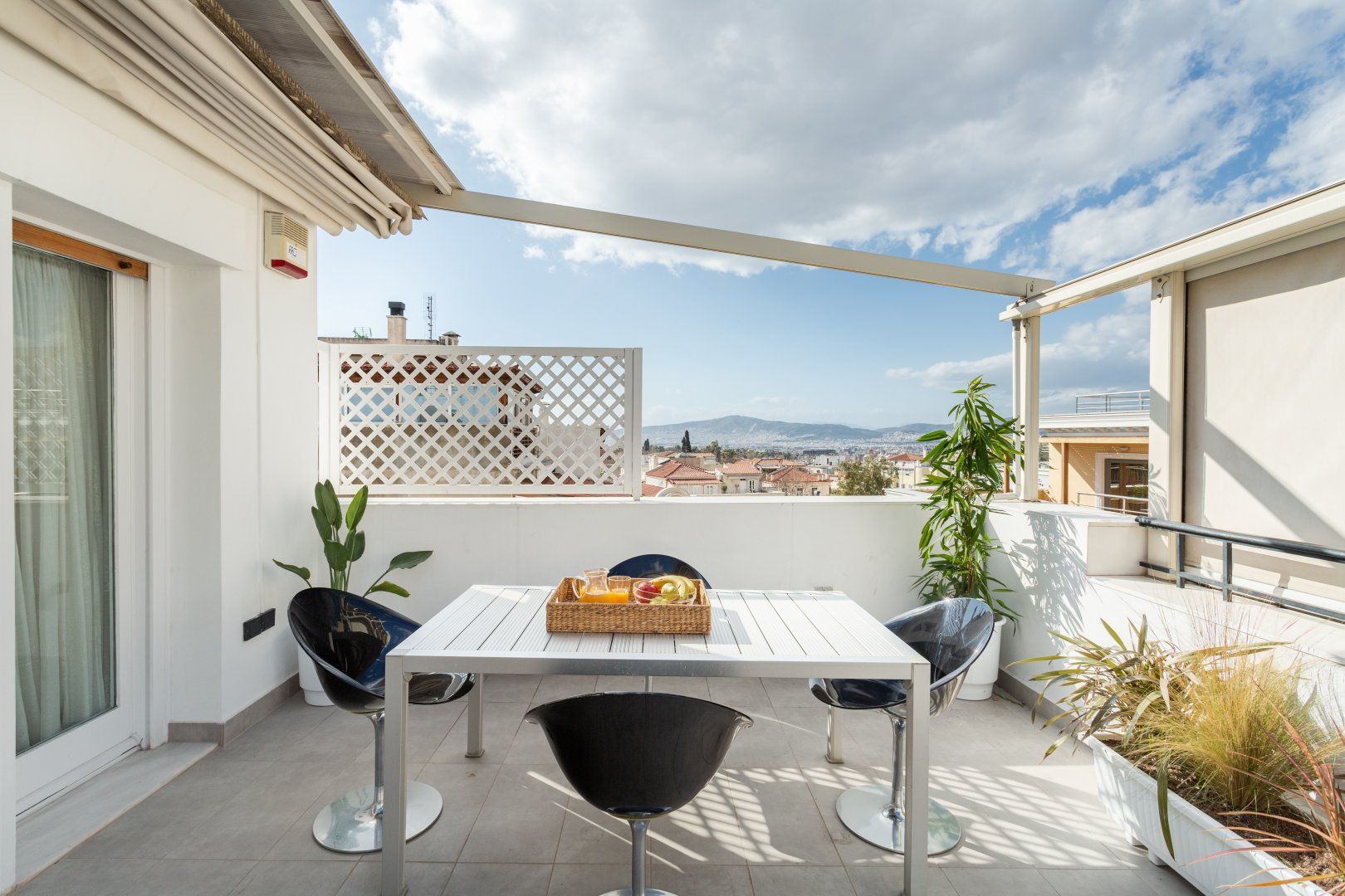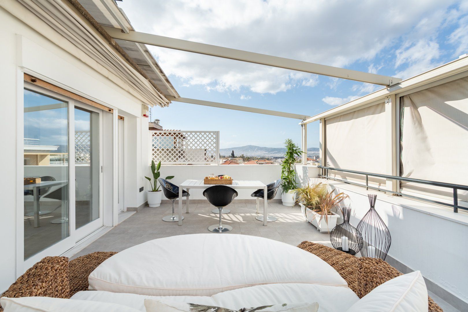 Return home to relax in front of the candlelit fireplace, or snuggle up on the comfy lounger while watching the sun set behind Acropolis. You'll be surrounded by the silhouettes of the distant mountains every night – pure bliss while you tuck into a homecooked meal on the terrace after an exciting day.