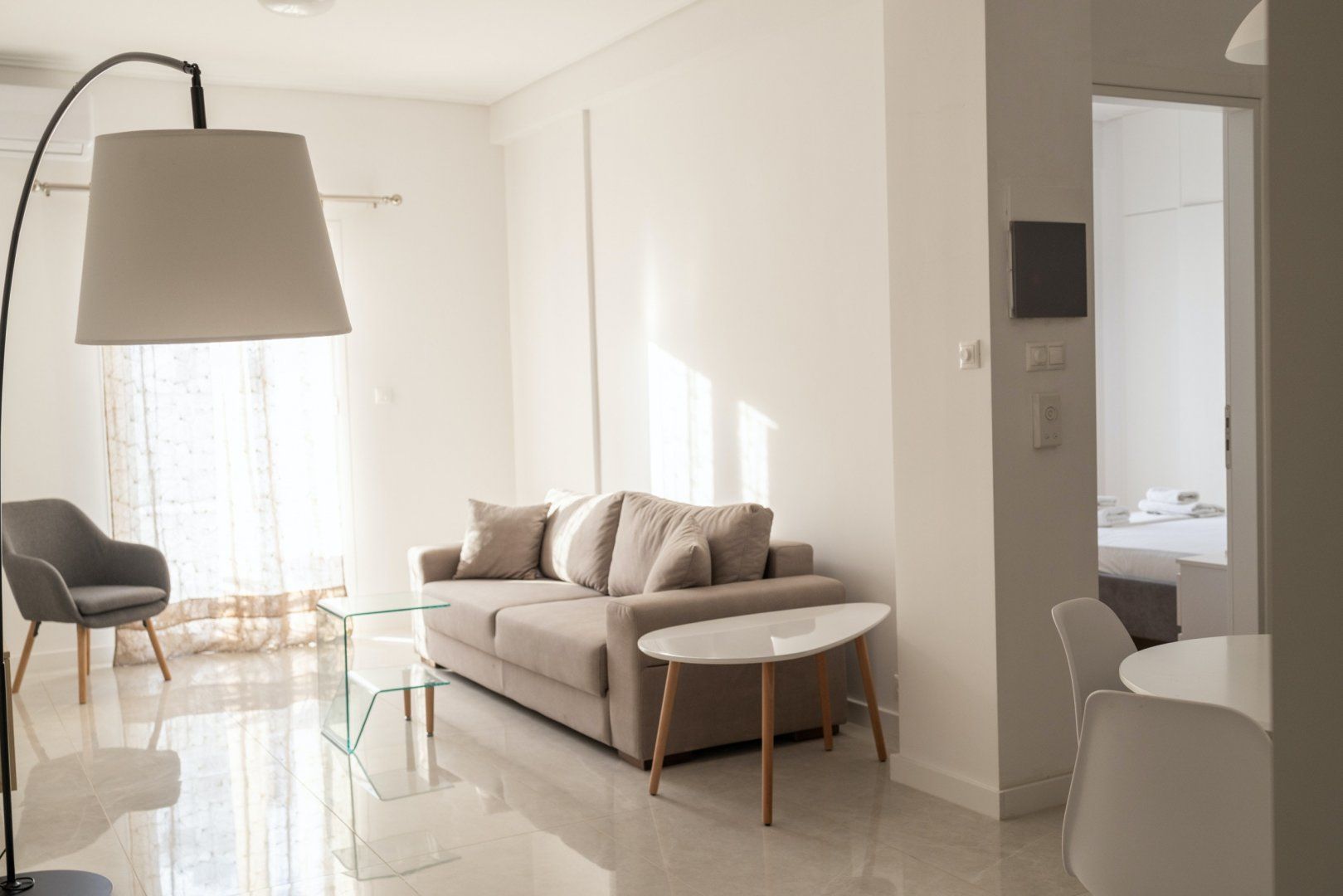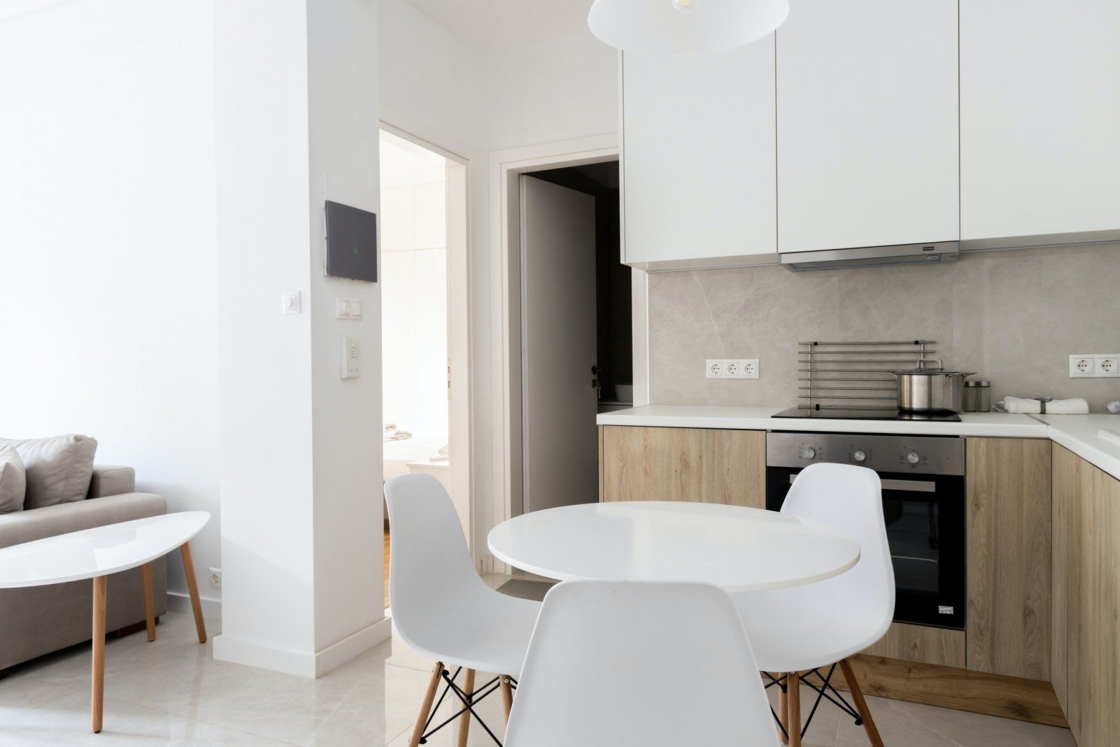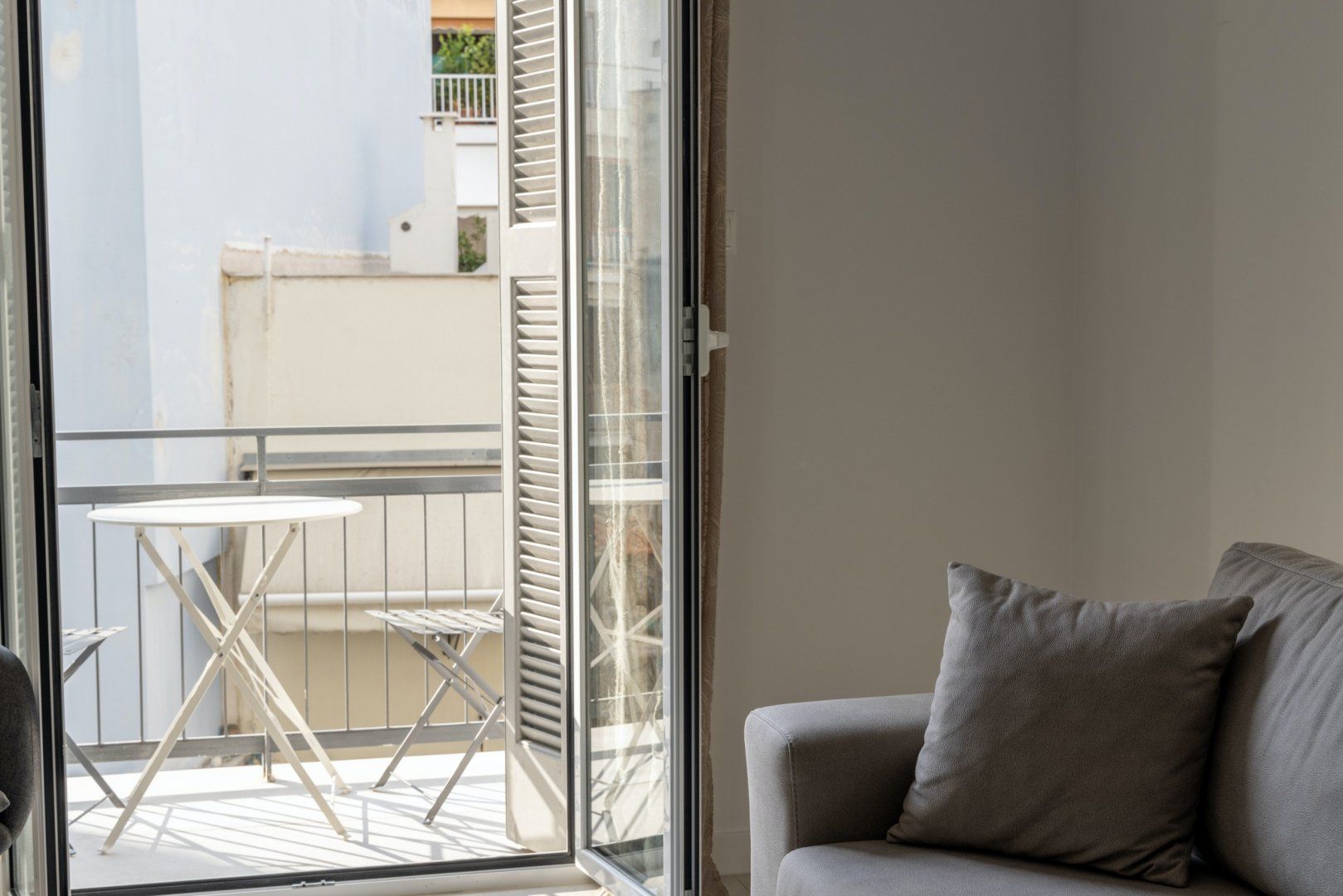 Pared-back and decorated with a distinctly Scandi feel, the open-plan living area invites you to begin your mornings over fresh coffee around the kitchen’s dining table and kick back on the sofa after a day of exploring the capital. What’s more, you’ve got a private balcony to enjoy – the ideal spot to sip a glass of Greek wine before heading out to sample the local restaurant scene. Factor in the comfortable bedroom beckoning a restful night’s sleep, and you’ve got everything you need for a carefree stay.