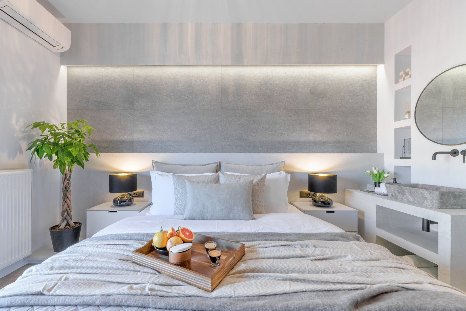 Step into the bedroom to be dazzled by its beautifully dressed bed and its door leading out onto the balcony, ensuring you get your dose of Greek sun first thing each morning. And after a long day of exploring the city on foot, nothing says relaxation like a long soak in the Jacuzzi tub.