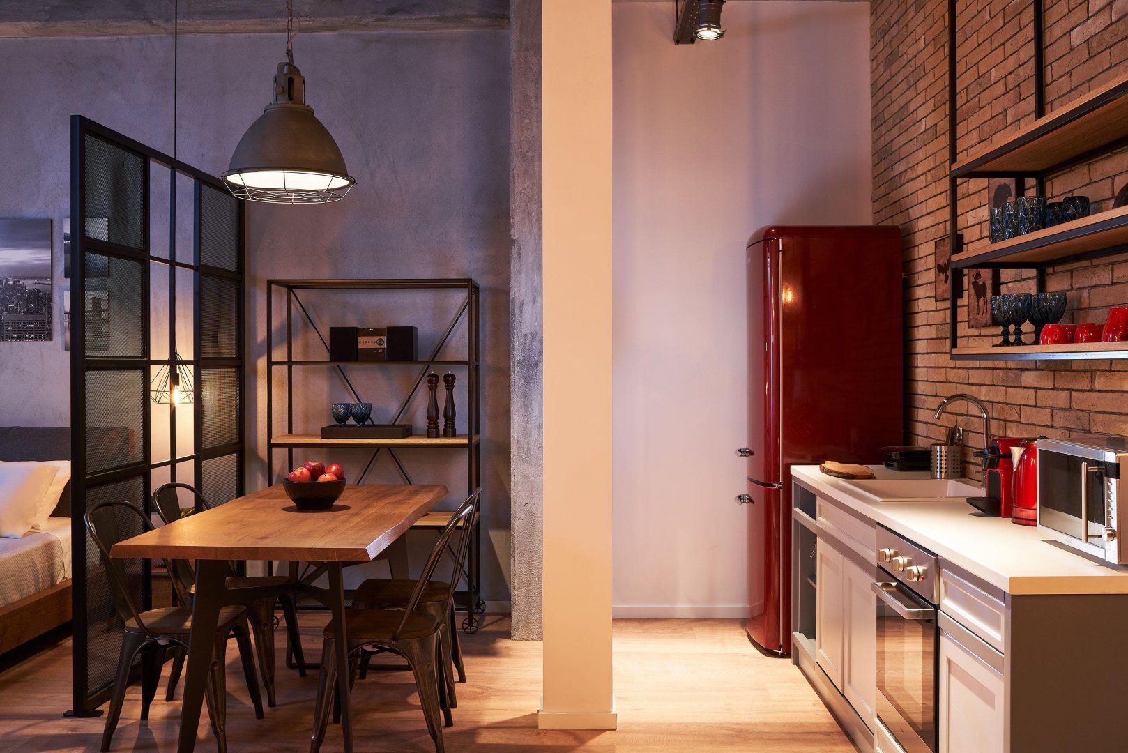 This spacious, industrial-style studio apartment is situated in upmarket Kolonaki, home to boutiques, art galleries and fine dining restaurants. There are plenty of attractions within walking distance including Kolonaki Square, 170 metres from here, while the Museum of Cycladic Art is 400 metres away. Of course no trip to Athens would be complete without a visit to the Acropolis and the Parthenon (2 kilometres from this home). Inside, the bedroom is separated from the kitchen by glazing. Though the kitchen is fully equipped with a hob and oven, there isn't much food preparation space. While the home can sleep up to four people, the maximum occupancy here is two guests.