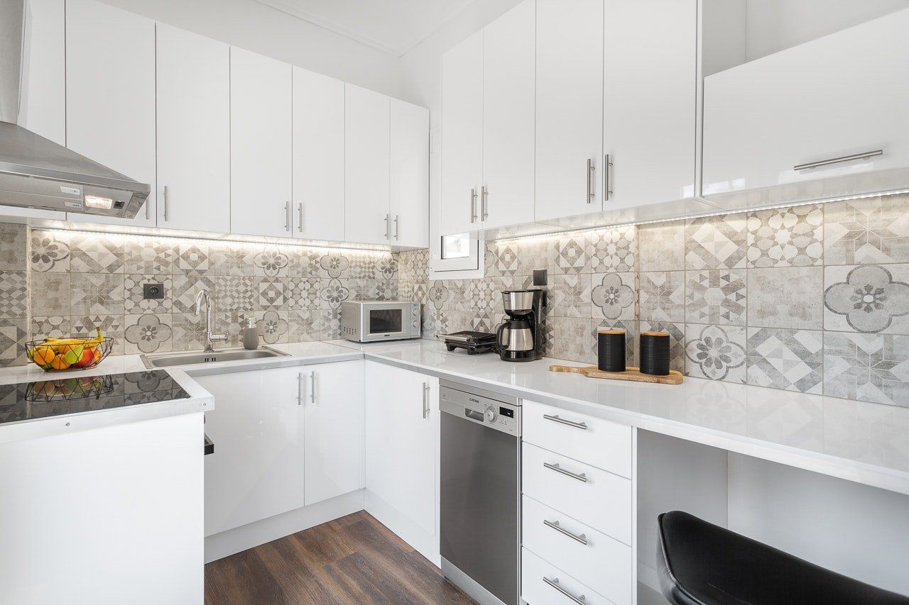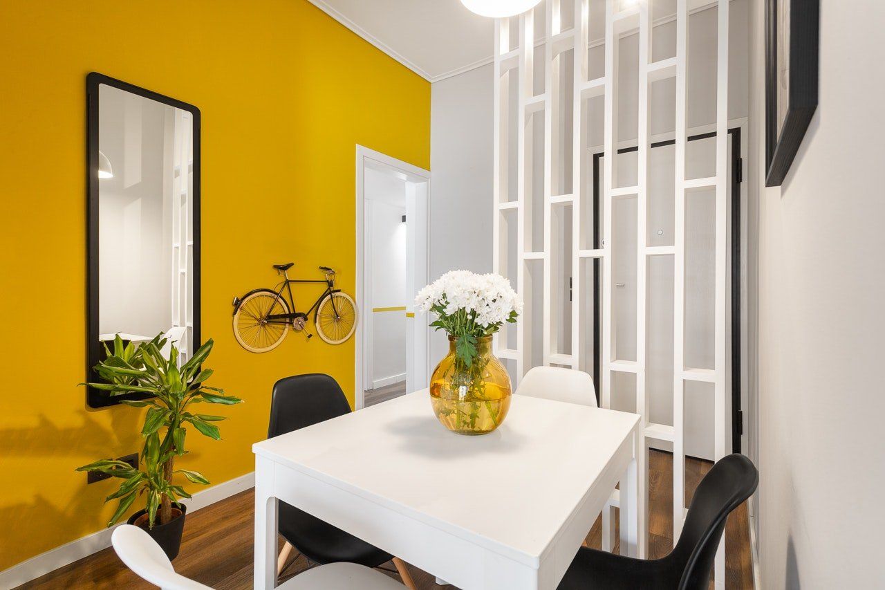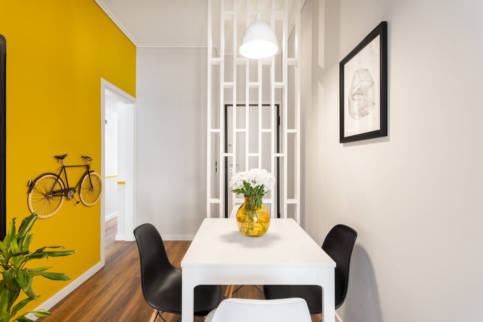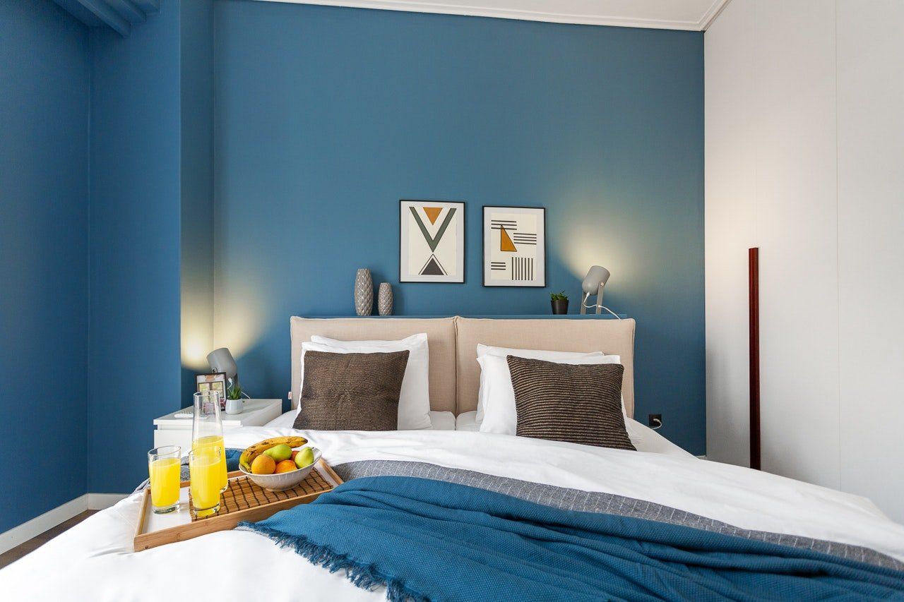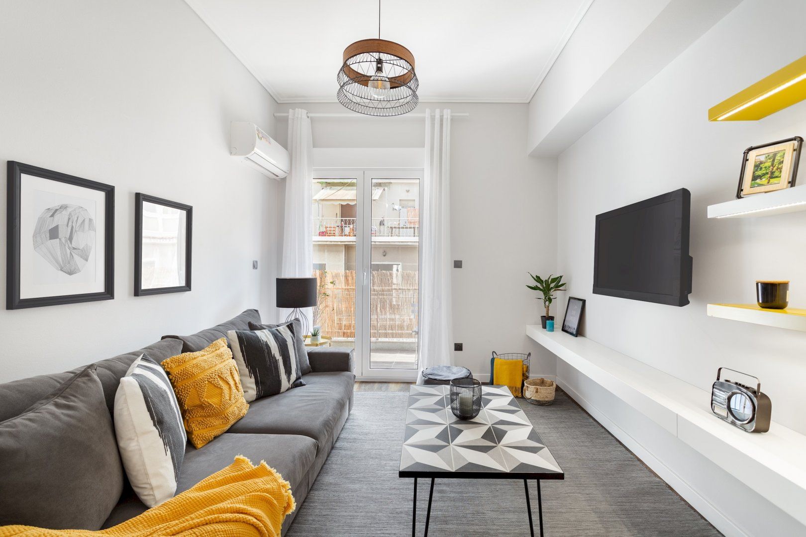 Modern and bright, it offers a design-led decor and ample natural light thanks to its pair of balconies accessed via the living room and bedrooms. Take your pick of these outdoor spots on which to enjoy your morning coffee or celebratory glass of Ouzo, or kick back in the ochre and black living area after a long day of sightseeing.